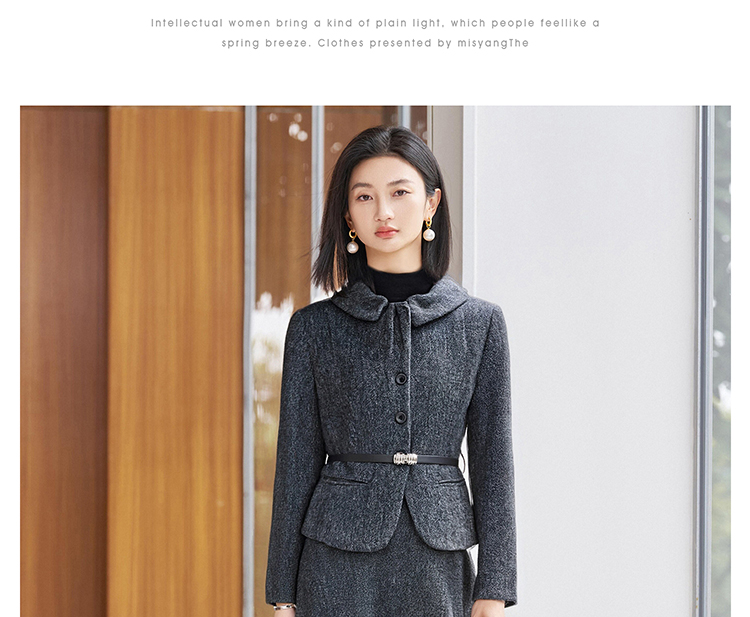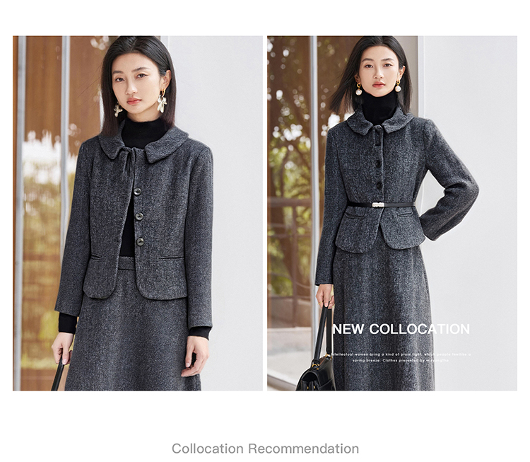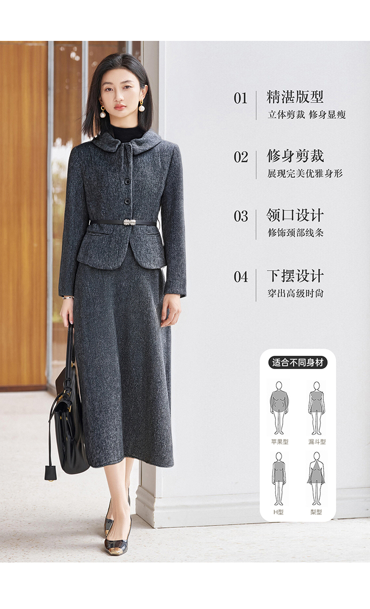 剩S/M/L/XL 【时光套装】米思阳2026春季新款优雅高级感羊毛保暖时尚套装气质收腰外套大摆裙两件套女5253