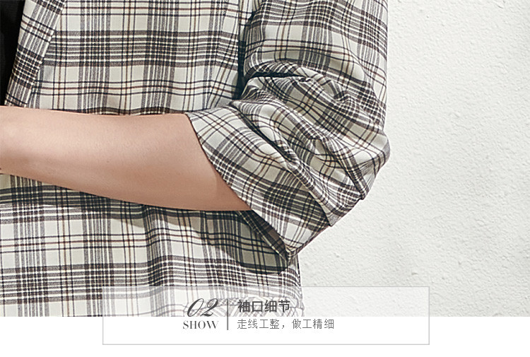 剩S/M/L/XL 芳外格纹中长西服风衣2022春季新款五分袖女式西服