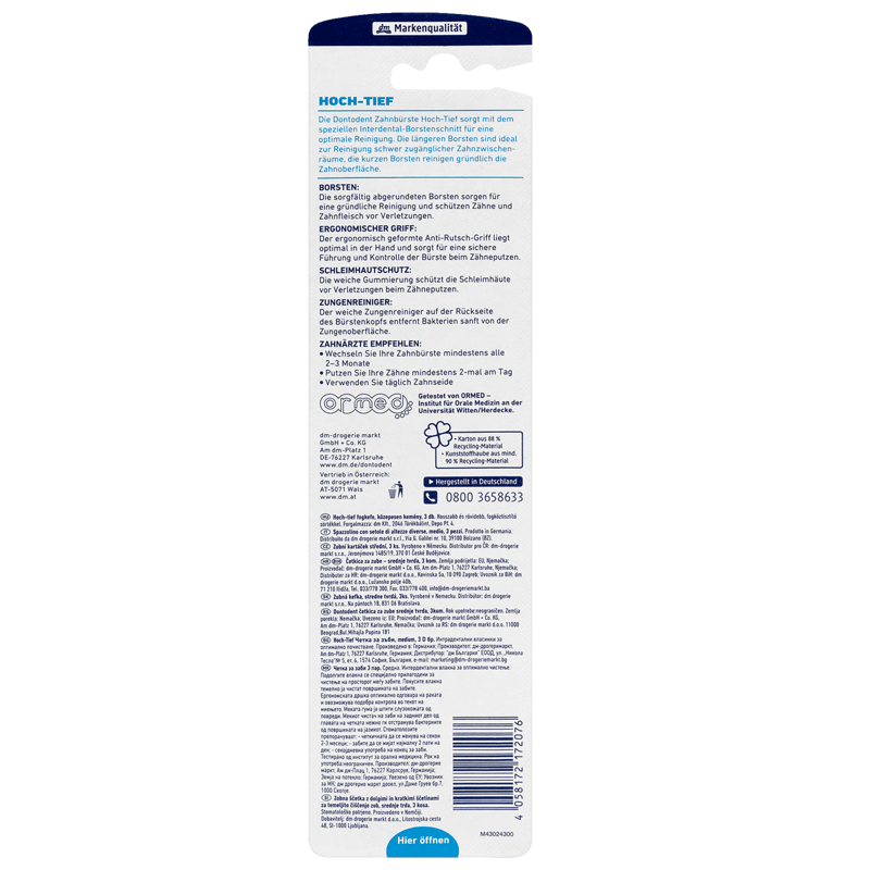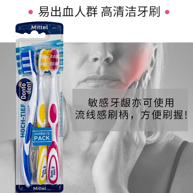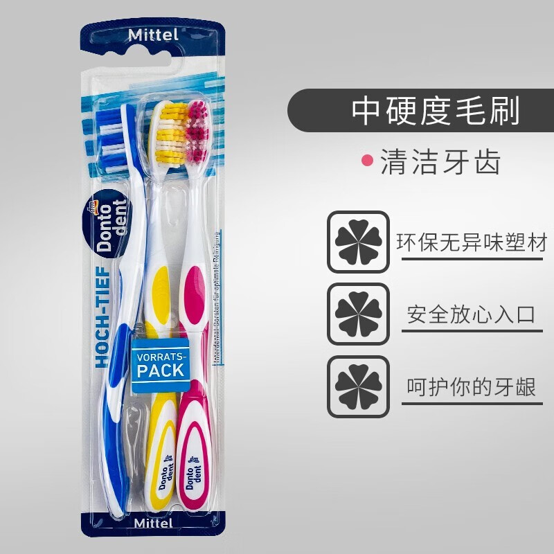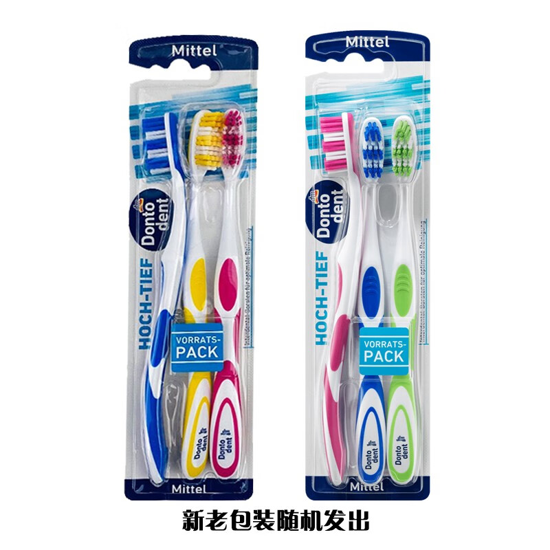 【中欧班列精选6支】德国东托登特牙刷Dontodent原装进口成人特细丝中软毛牙刷中毛牙刷 3支装*2