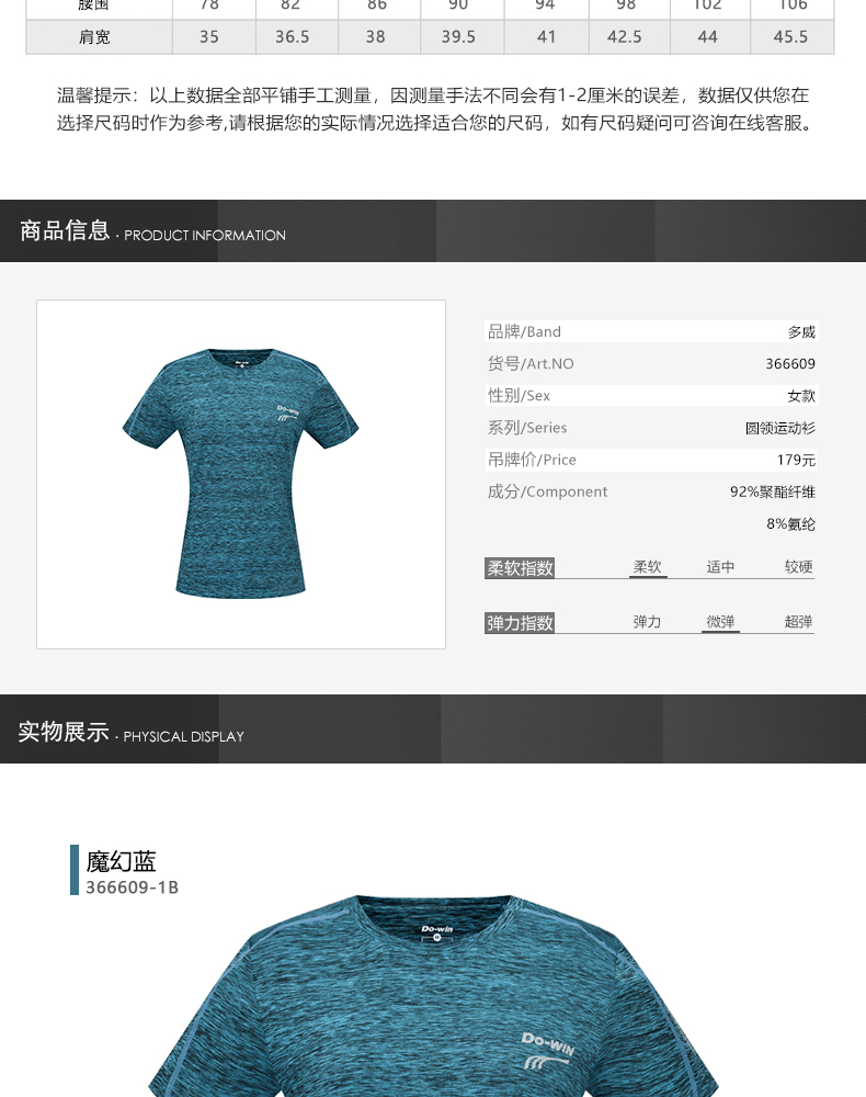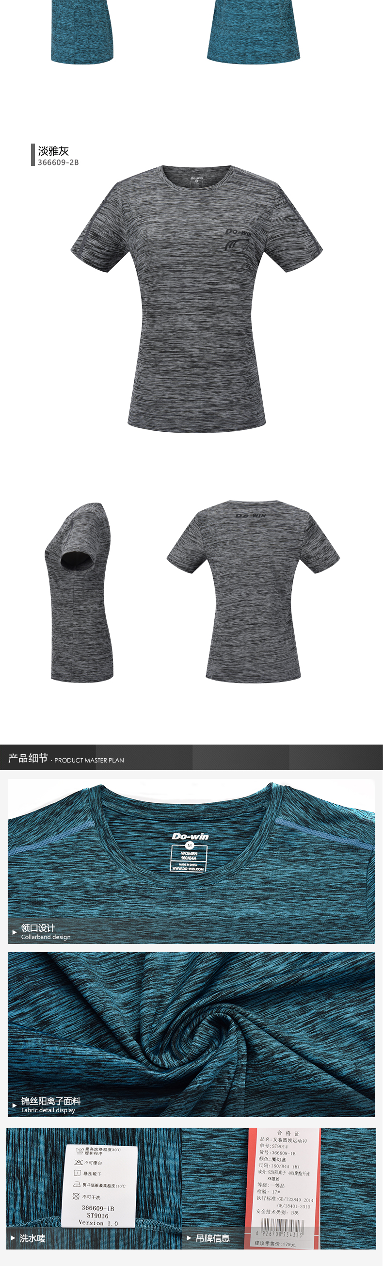 多威dowin运动T恤女圆领衫女士健身跑步短袖透气运动服366609