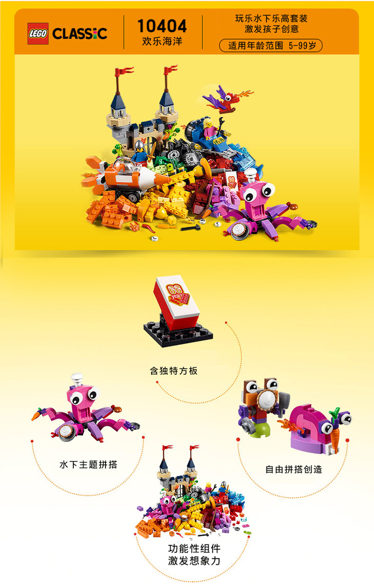乐高 LEGO 欢乐海洋 LEGC10404 Classic 适用年龄3Y-6Y 拼插积木益智玩具