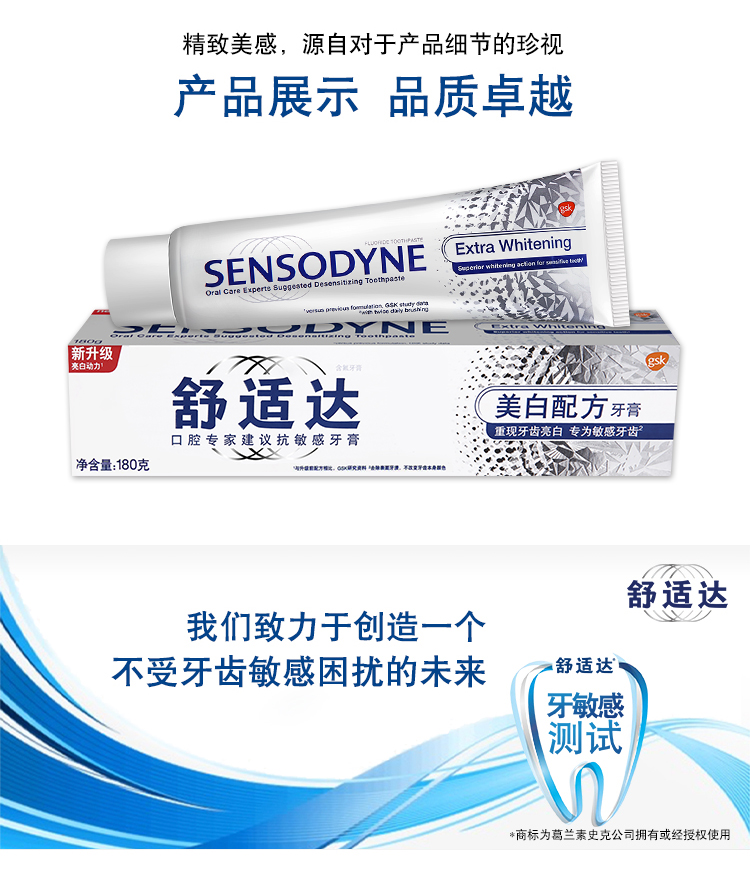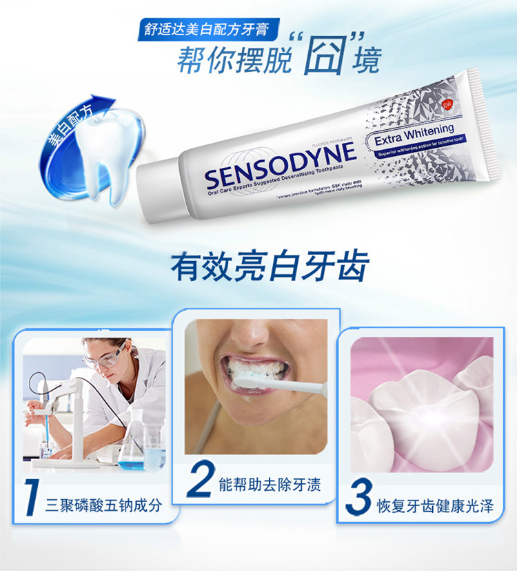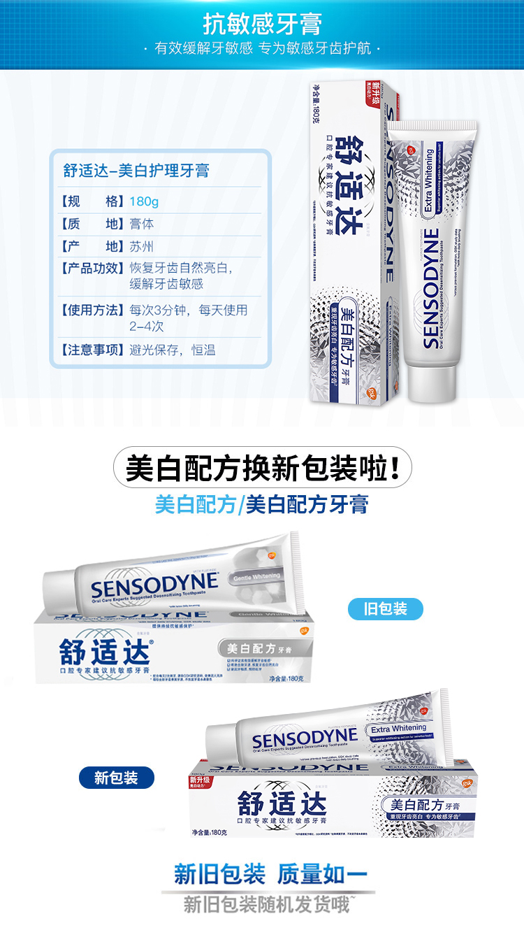 舒适达美白配方抗敏感牙膏 美白护理抗敏亮白牙齿清新口气去渍180g
