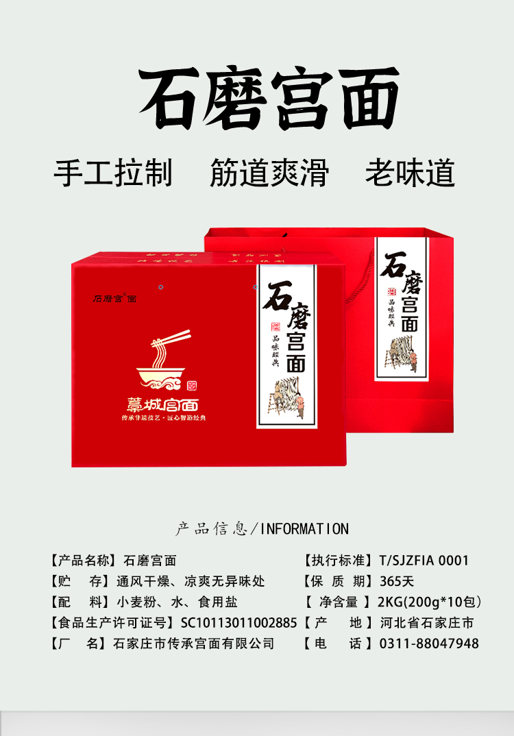 藁城宫面 石磨宫面礼盒装 非遗技艺 老字号 国家地理标志产品 2kg(200g*10盒)