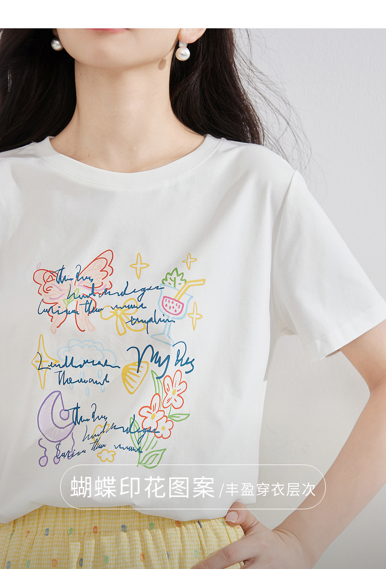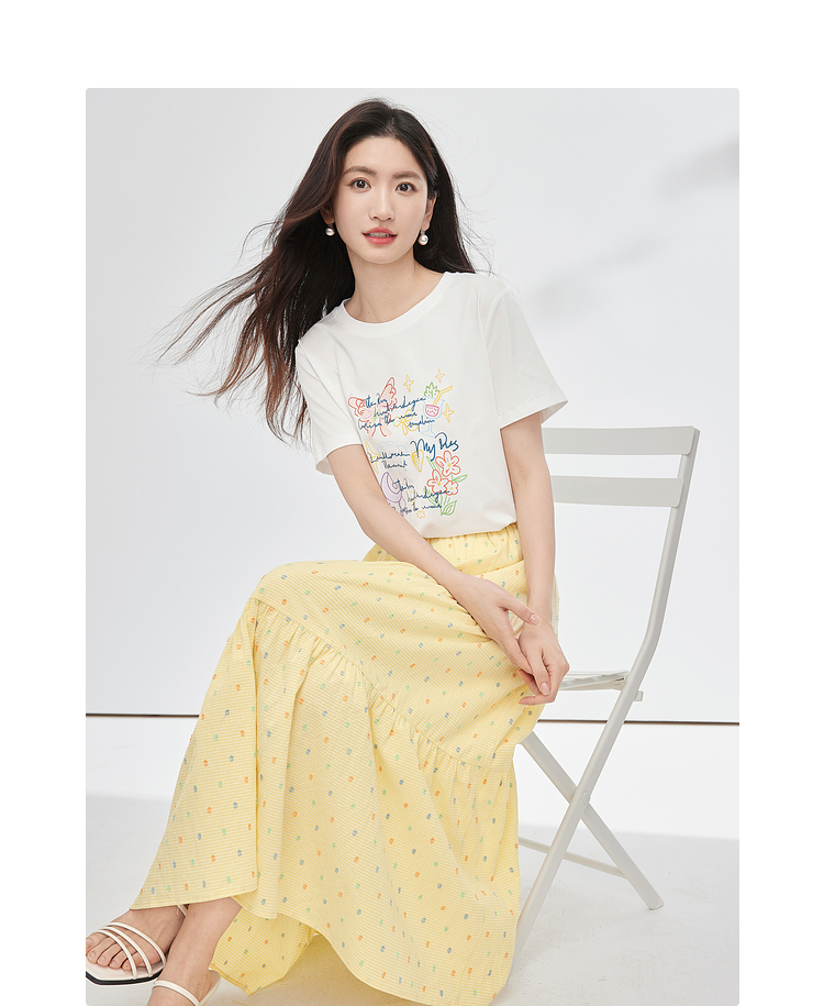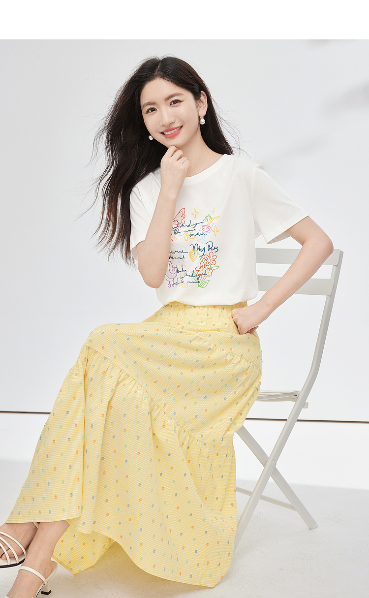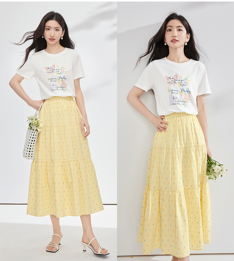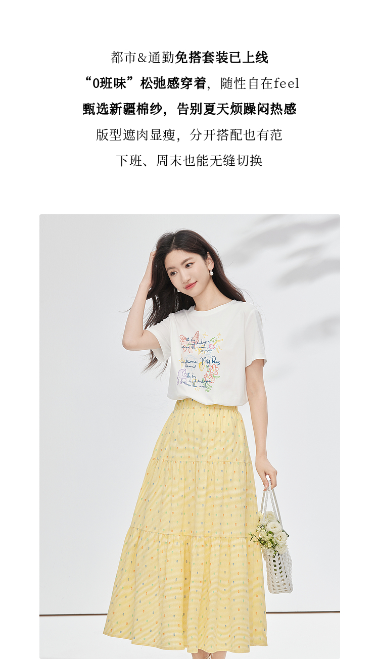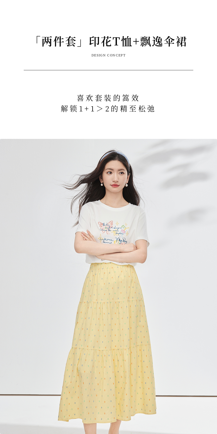 【07/16新品】熙世界减龄一整套穿搭女夏季新款休闲印花T恤蛋糕半身裙两件套装