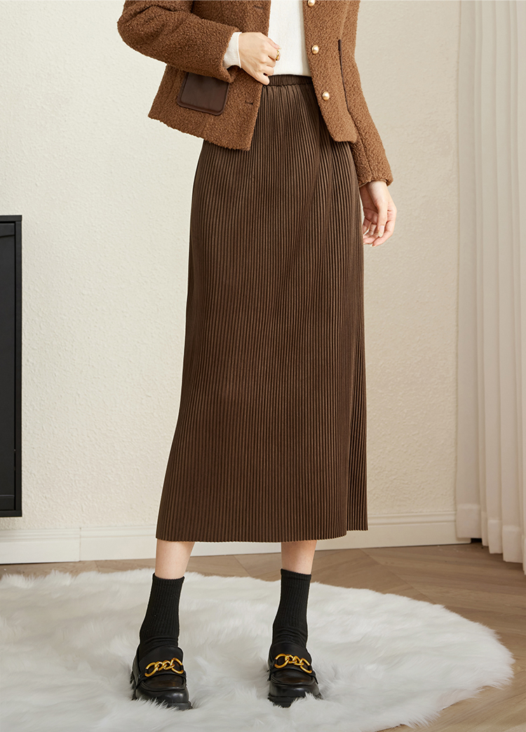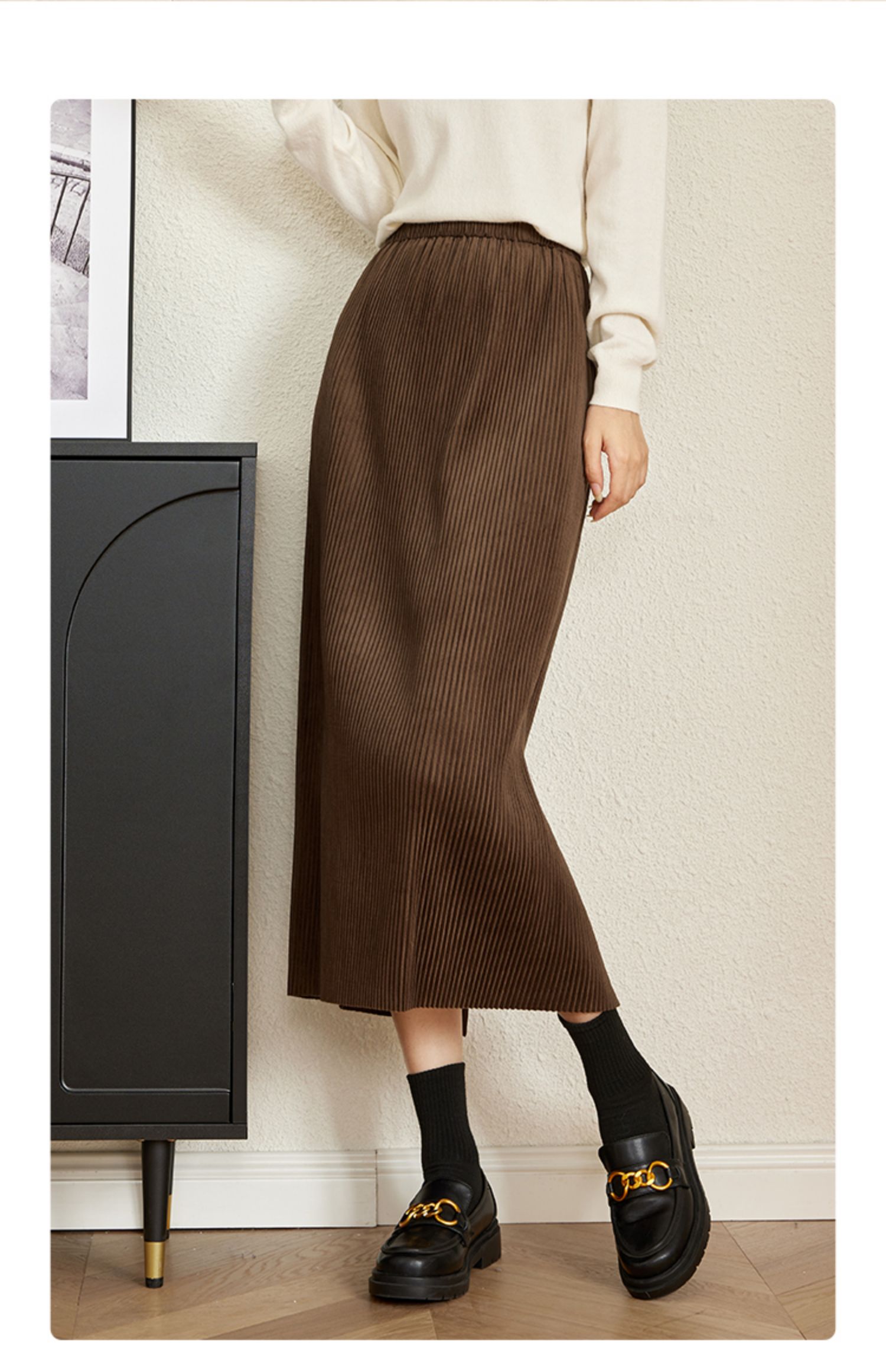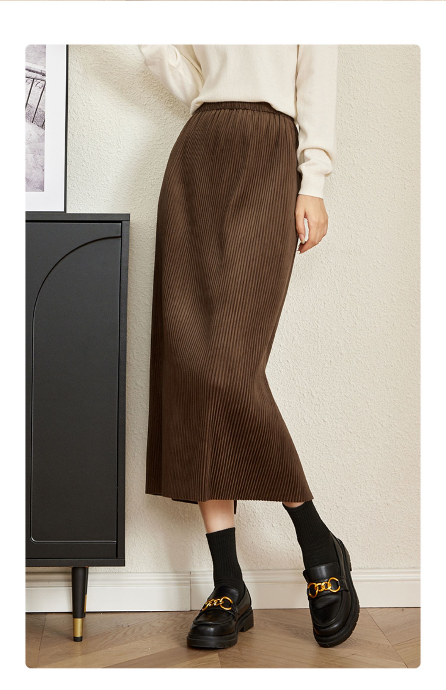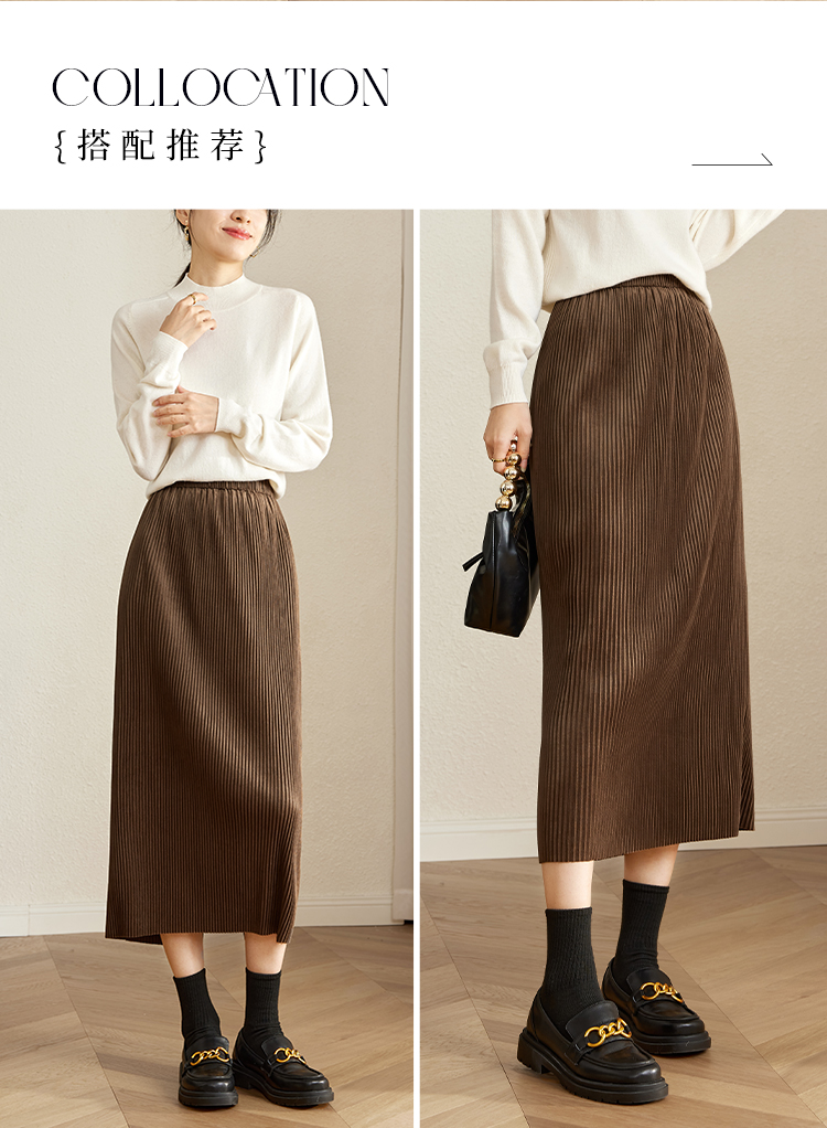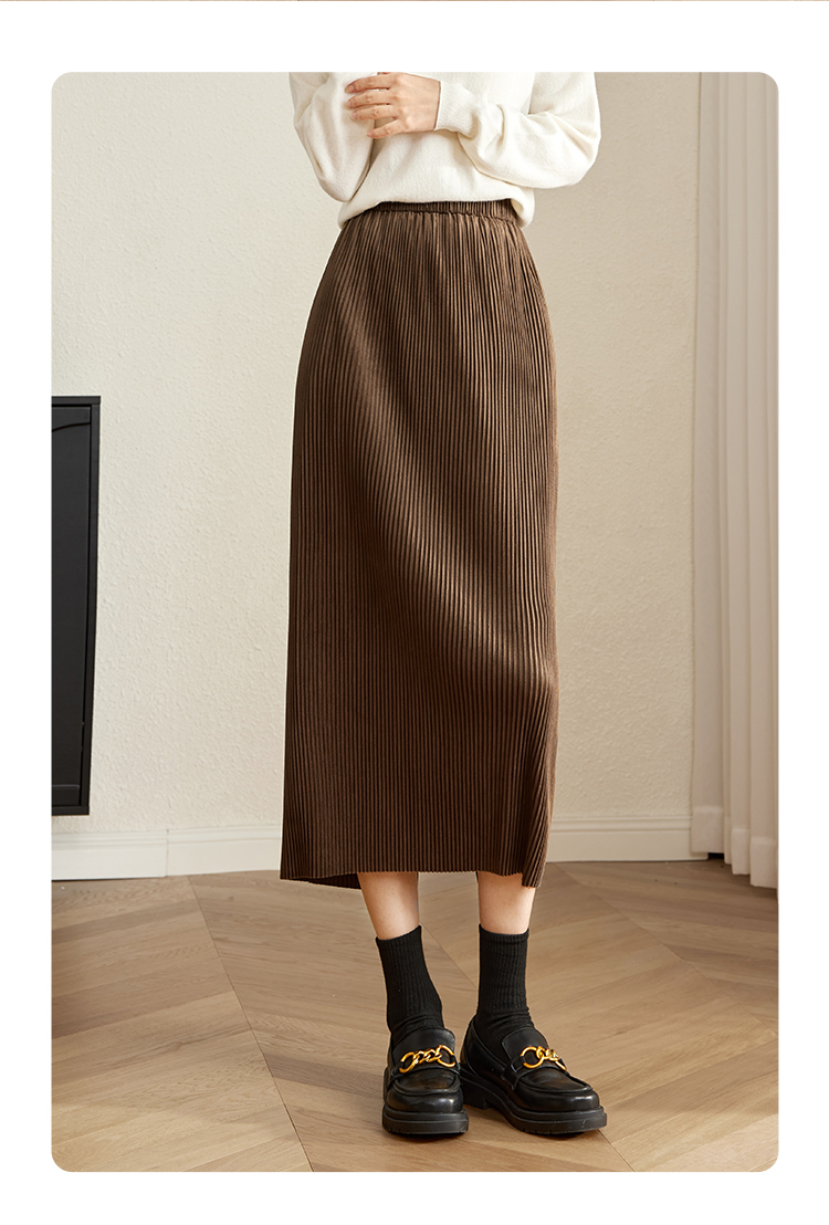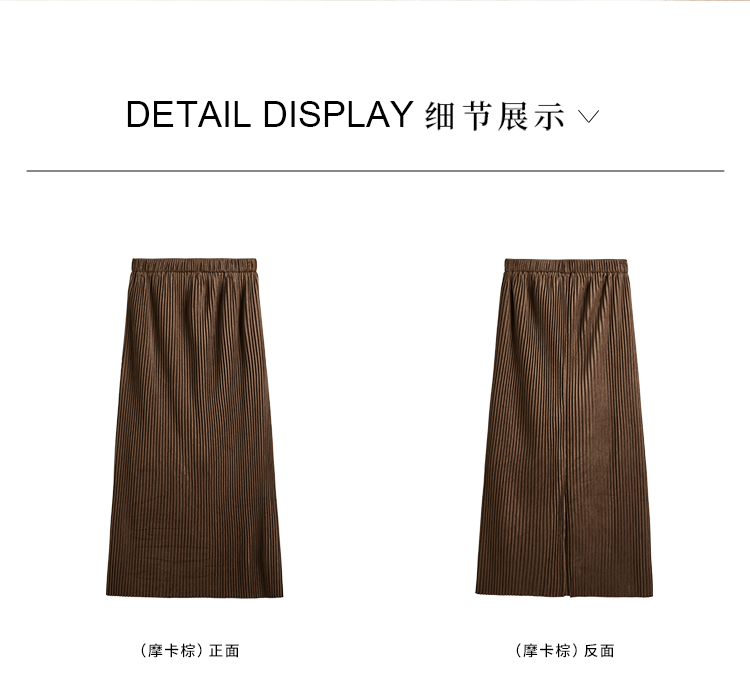 【年终特卖】熙世界复古棕色丽丝绒半身裙女秋冬2025新款复古开叉包臀直筒长裙