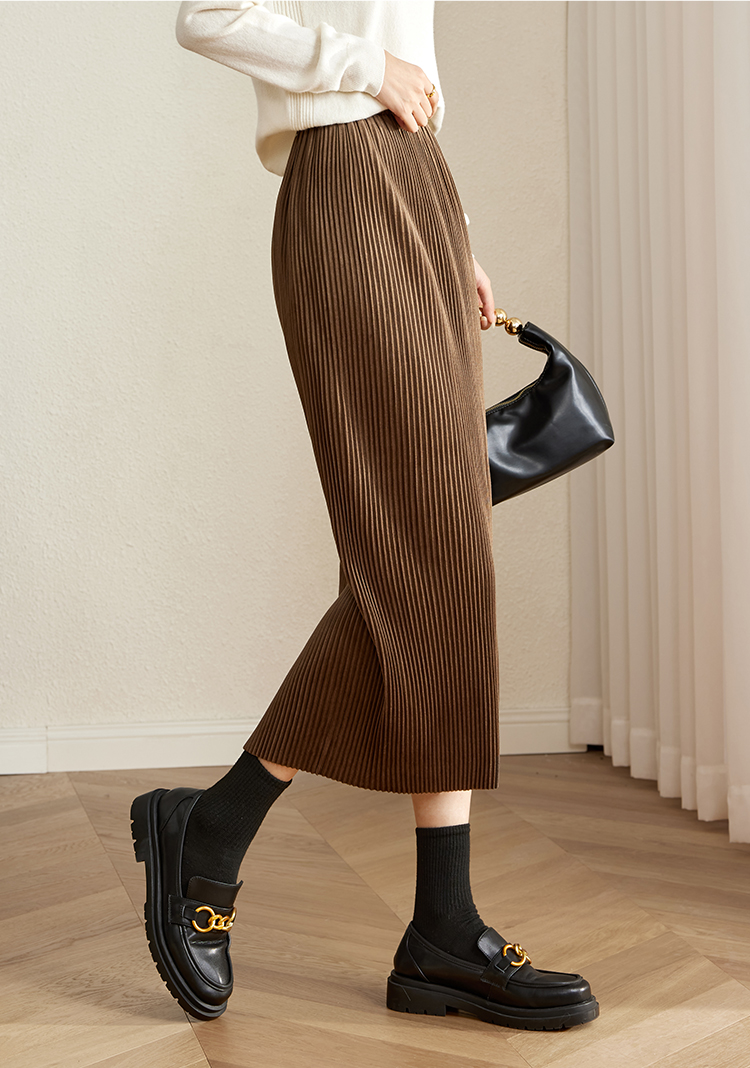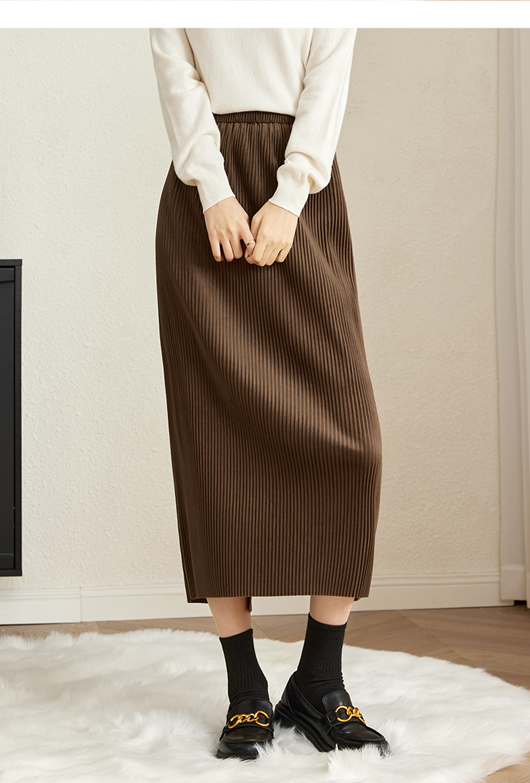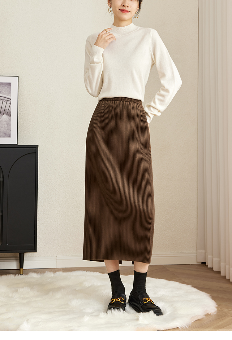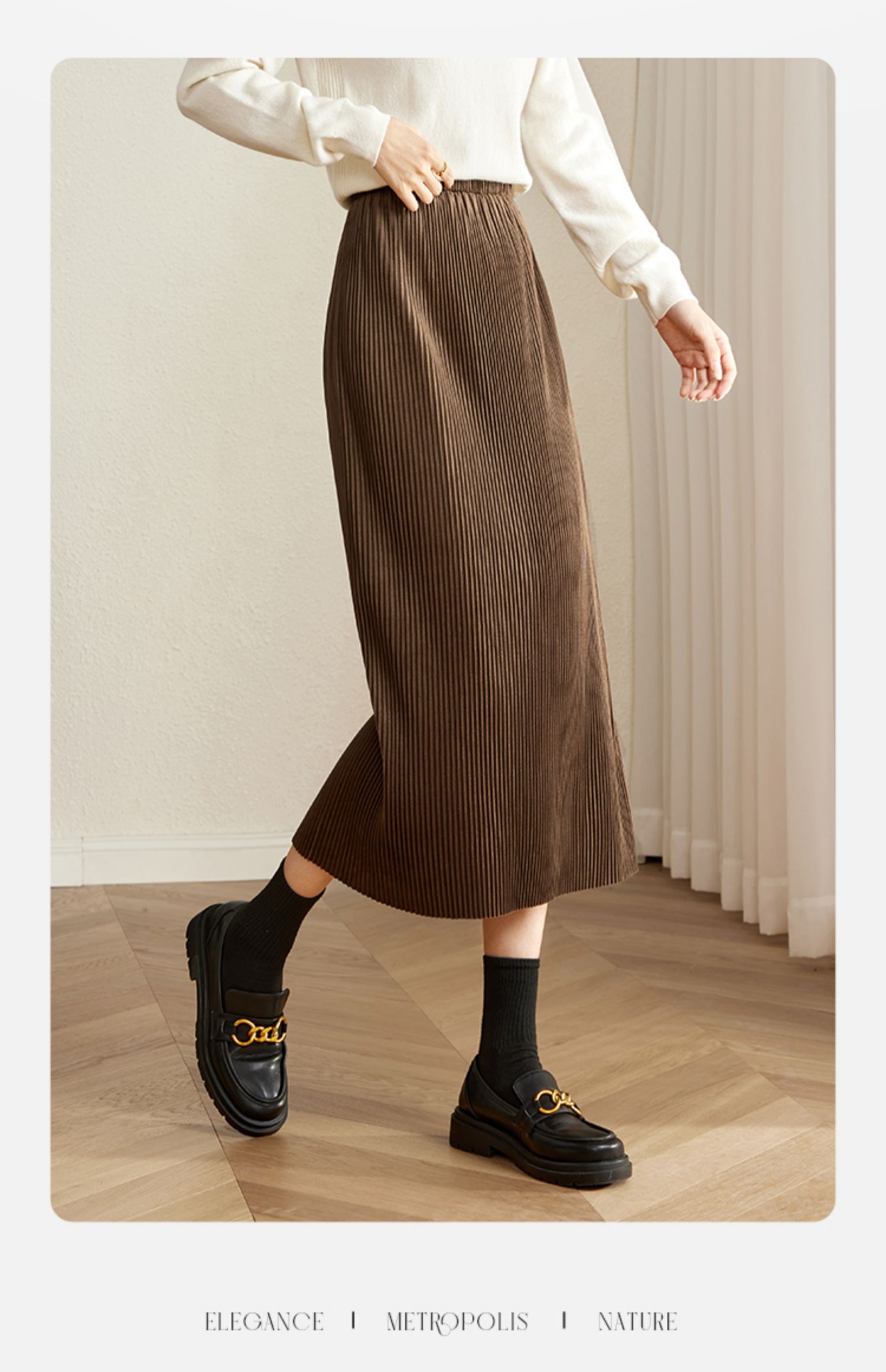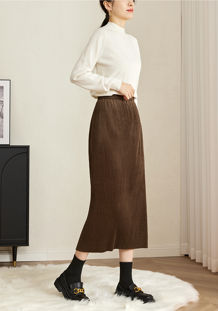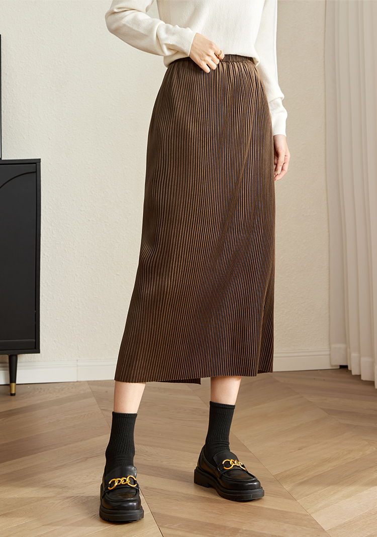 【年终特卖】熙世界复古棕色丽丝绒半身裙女秋冬2025新款复古开叉包臀直筒长裙