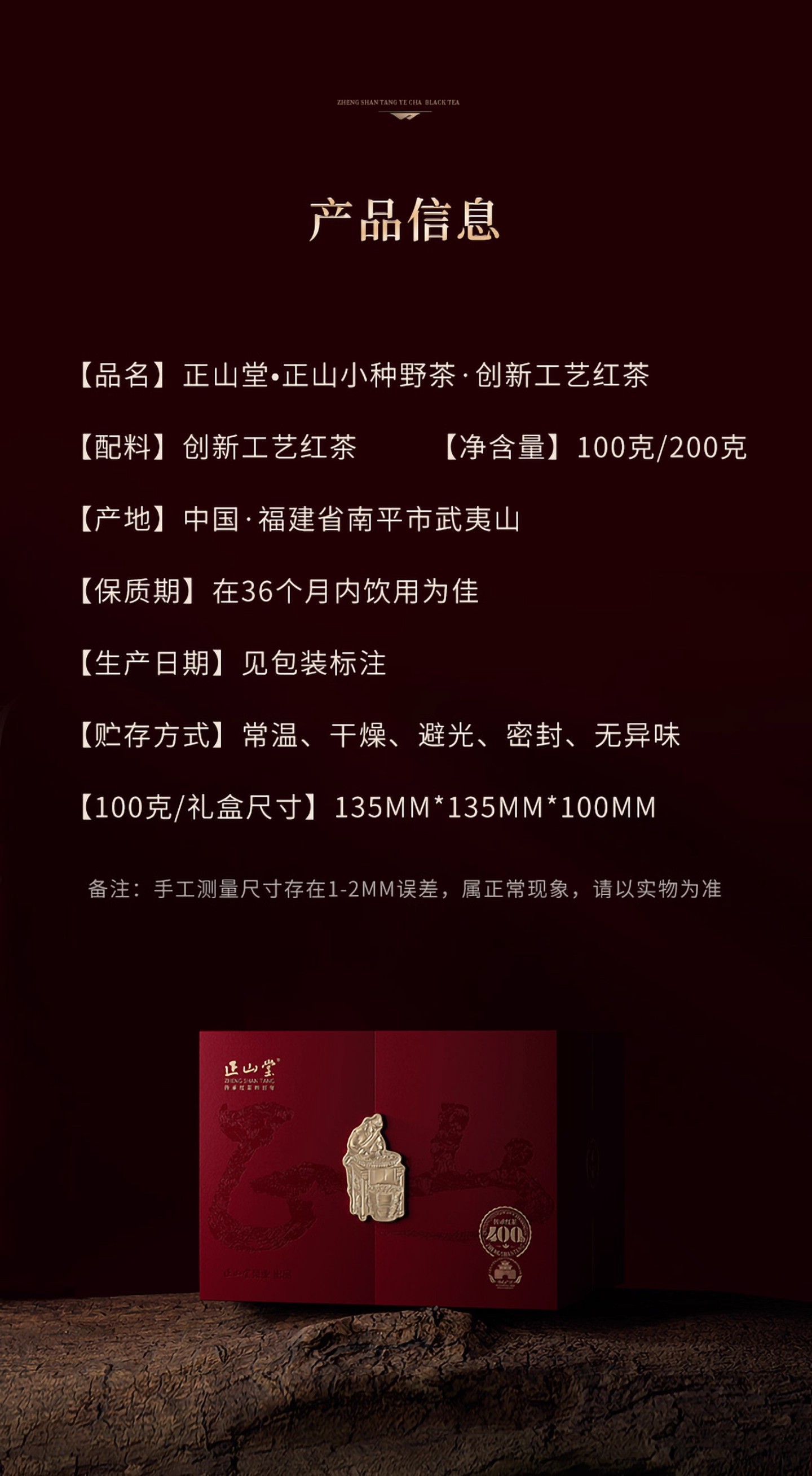 正山堂 正山小种 野茶 武夷红茶 桐木关 茶叶 礼盒 100g