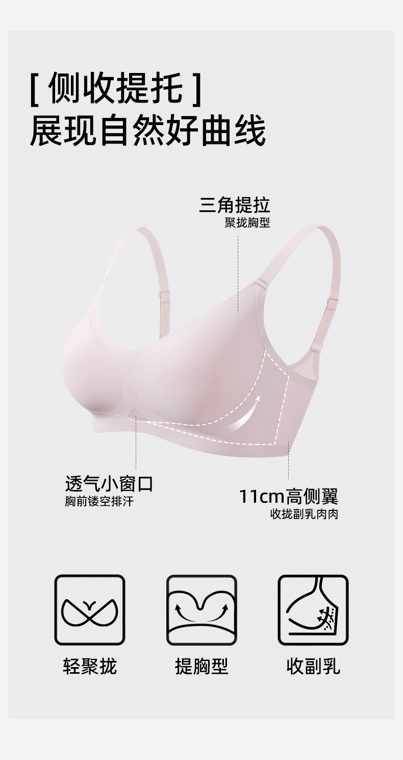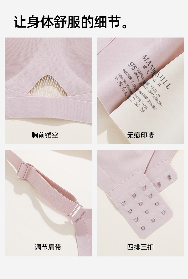 【商场同款】熳洁儿 自由无尺码内衣5A抗菌时尚镂空果冻软支撑文胸25201552