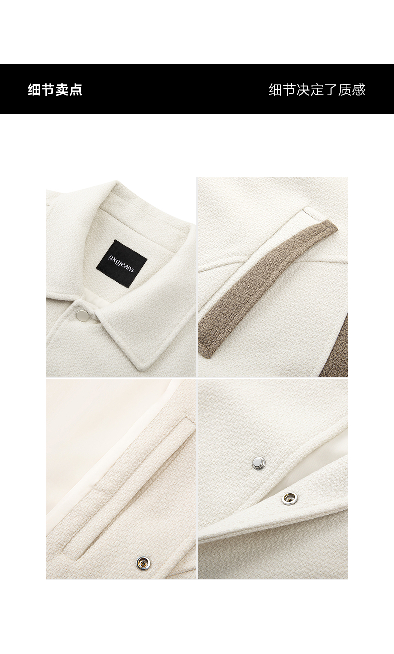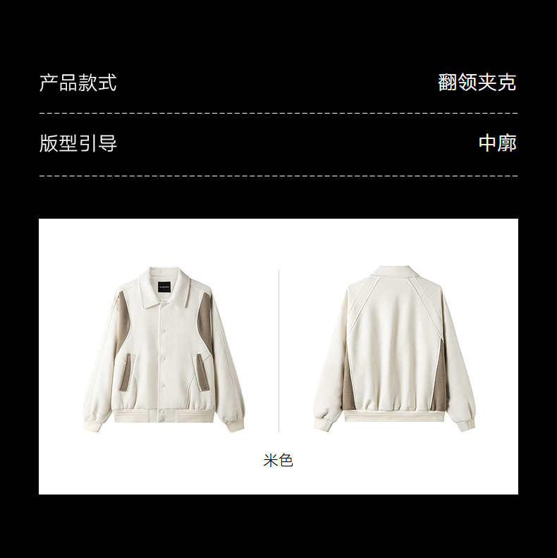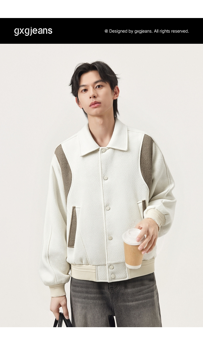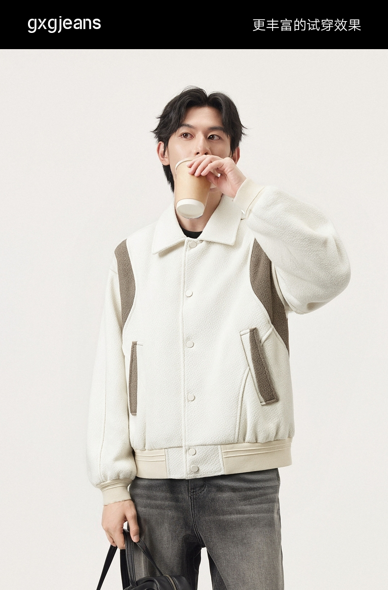 gxg.jeans男装 米色撞色拼接时尚宽松翻领夹克外套男 冬季热卖