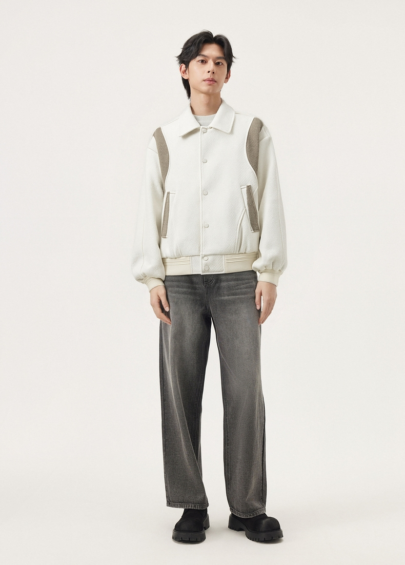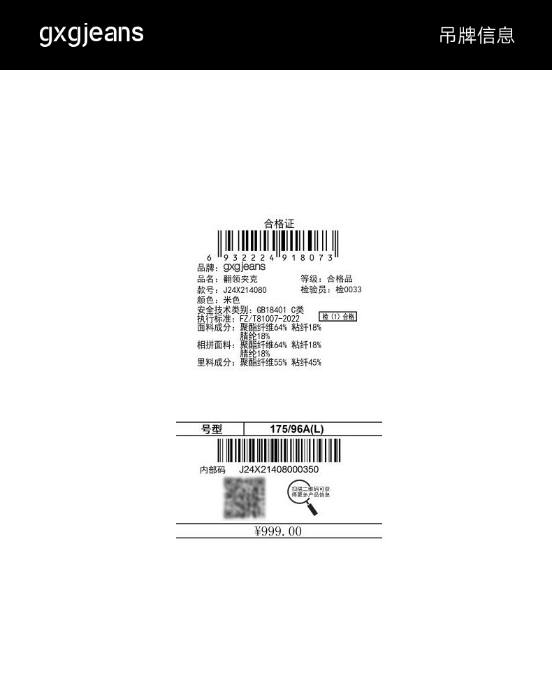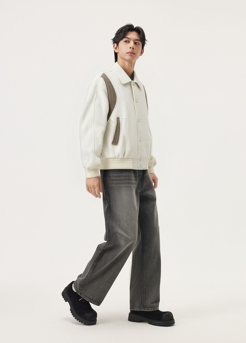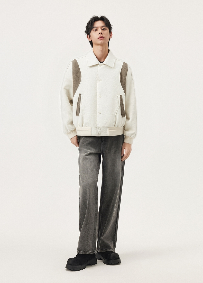 gxg.jeans男装 米色撞色拼接时尚宽松翻领夹克外套男 冬季热卖