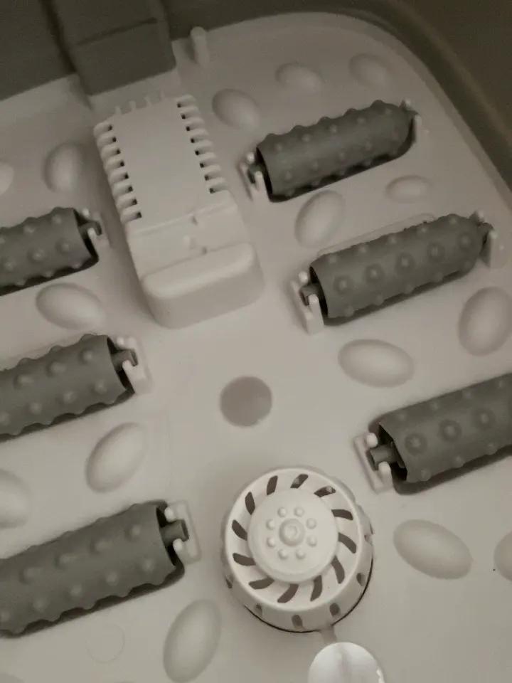 - 【滚轮按摩】配有6组海参滚轮,泡脚的同时享受足底按摩,迅速消除疲劳,促进血液循环。