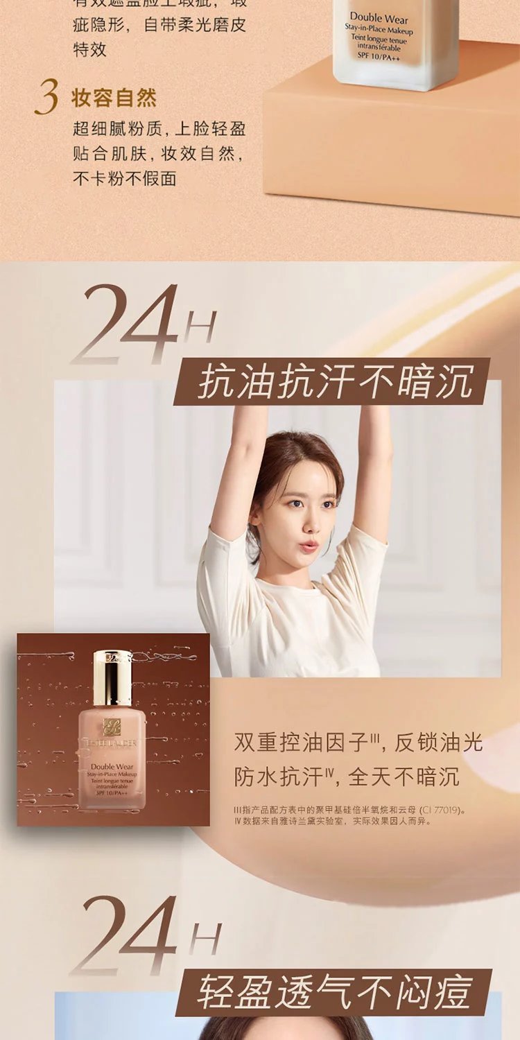 2、夏天的底妆最怕出油出汗,雅诗兰黛DW粉底液添加双重控油因子,长效控油,而且是雾面哑光妆感,简直就是大油皮亲妈,轻松24小时持妆无暇,高透气不暗沉