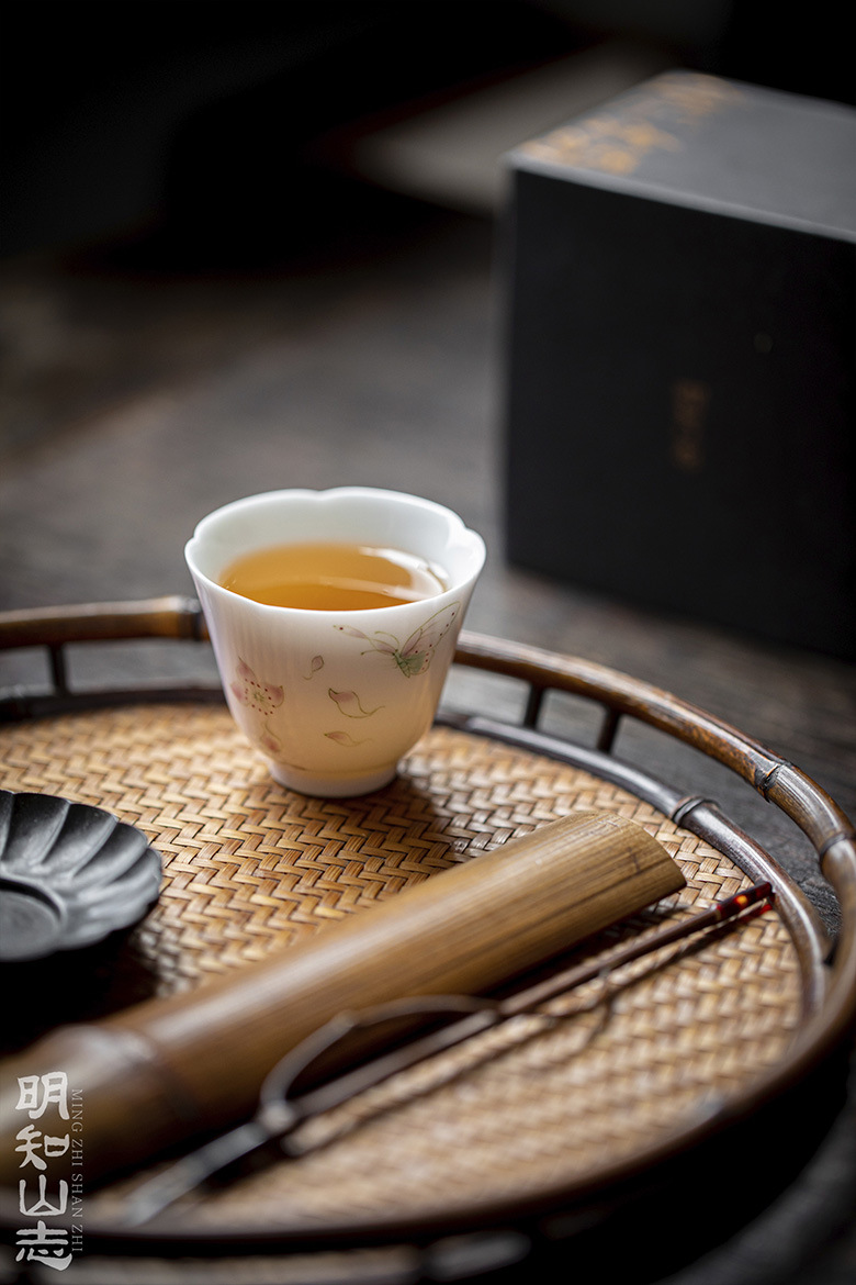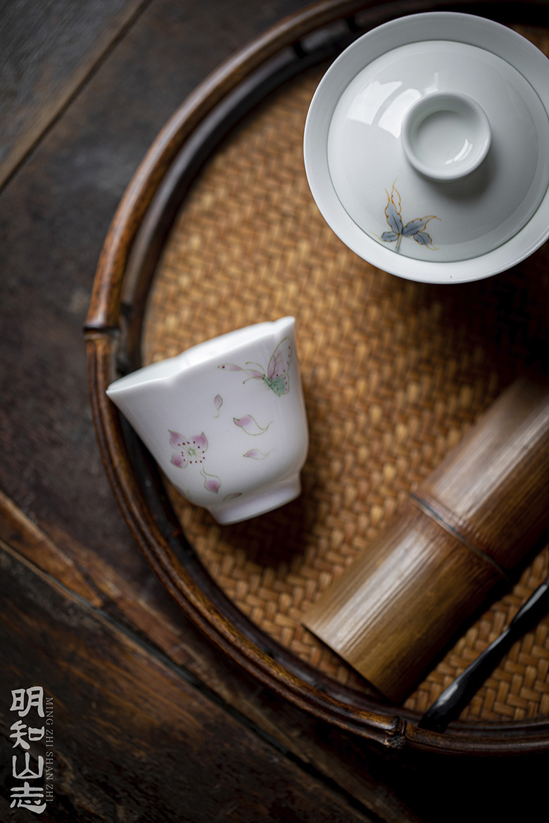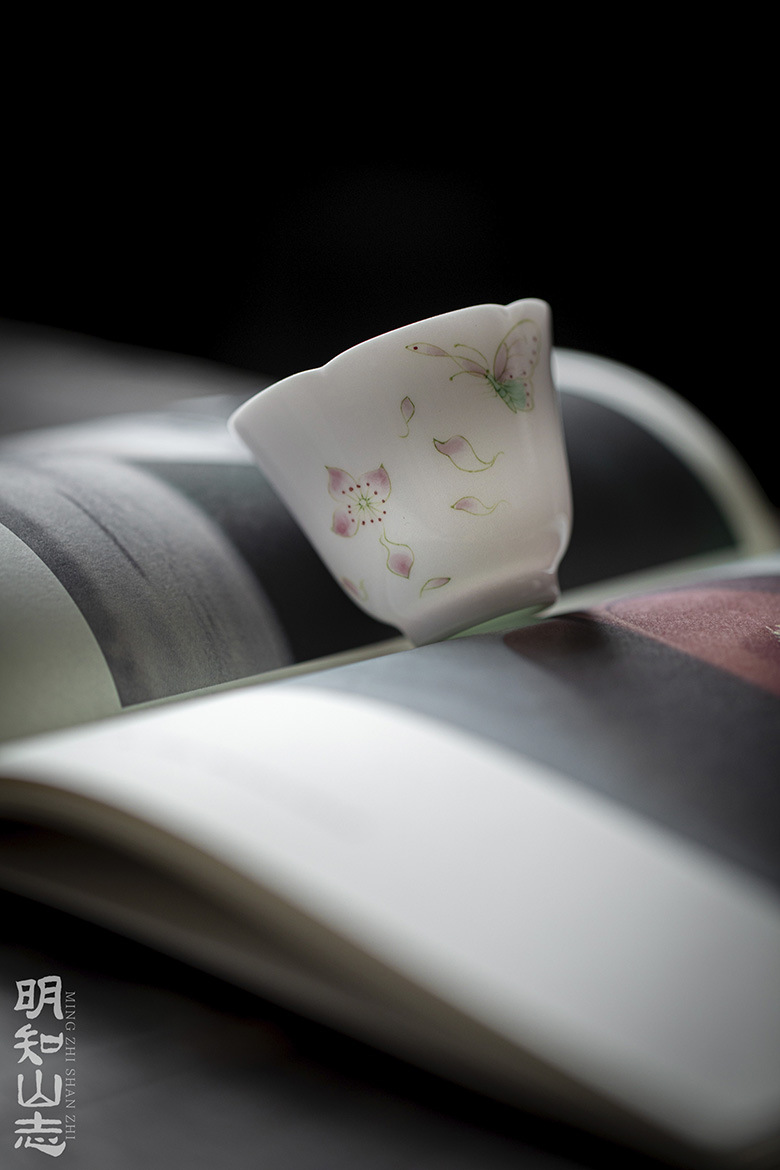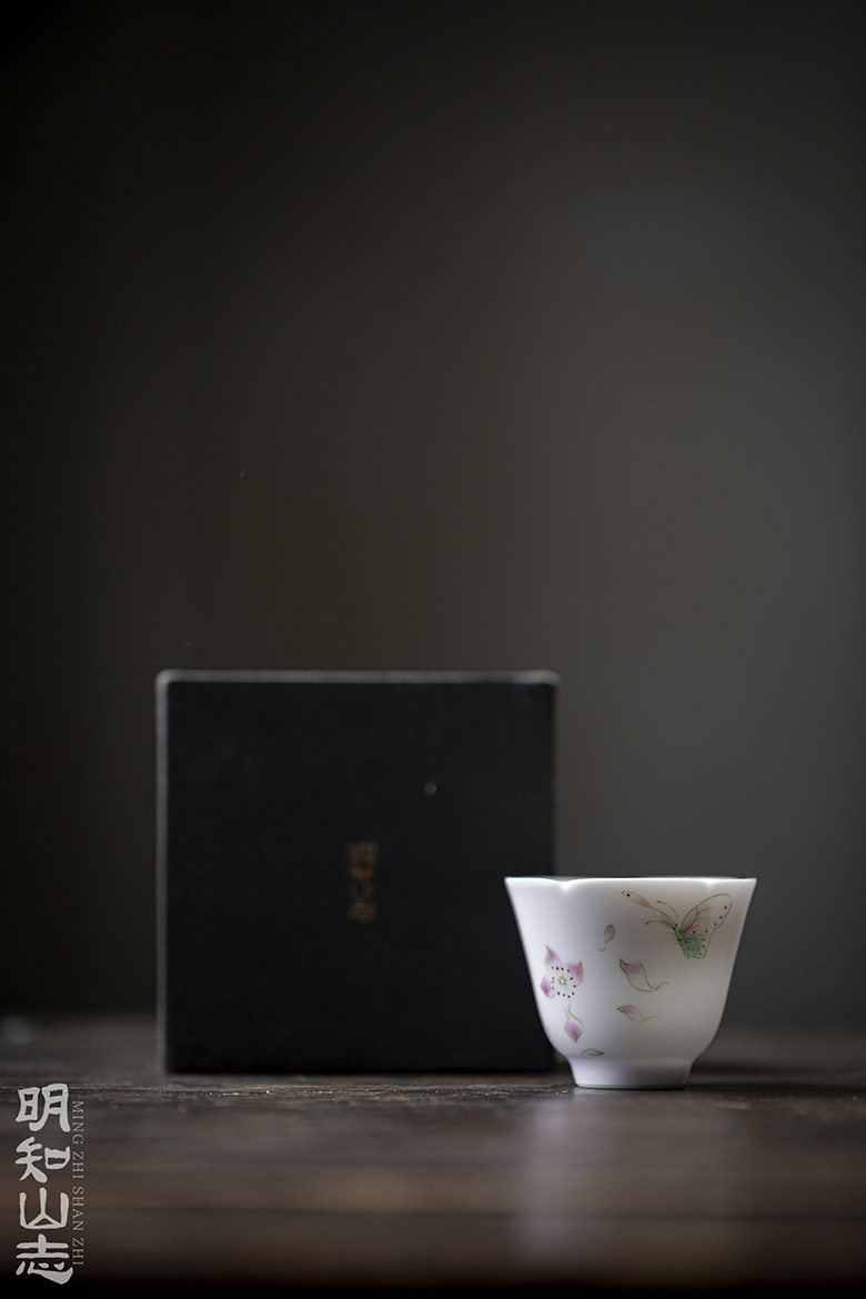 束刻/明知山志/杏粉/莲香漫舞/云灵杯手绘舞蝶粉色茶杯功夫茶具喝茶杯品茗杯