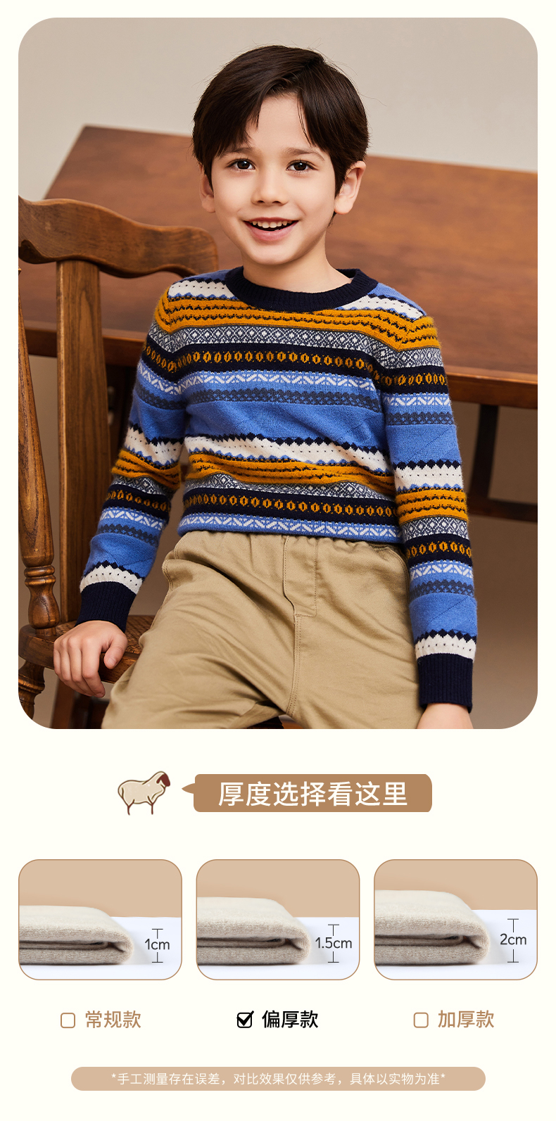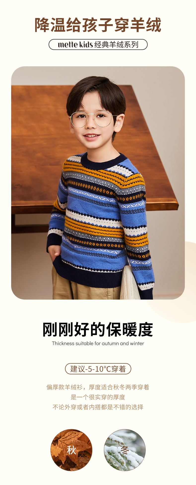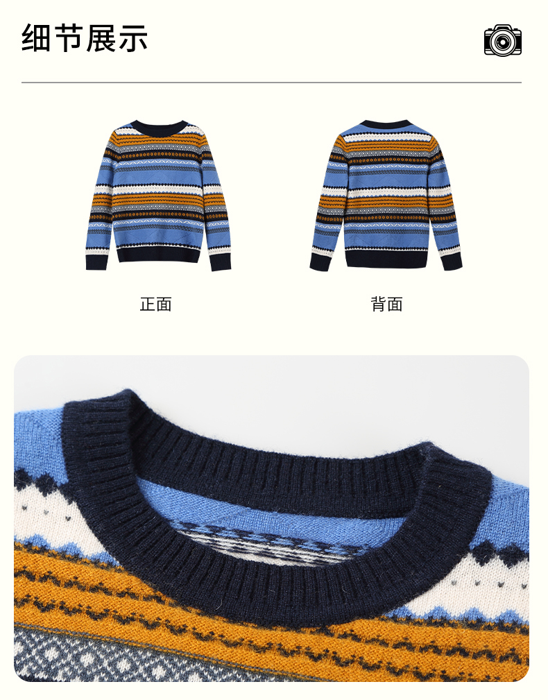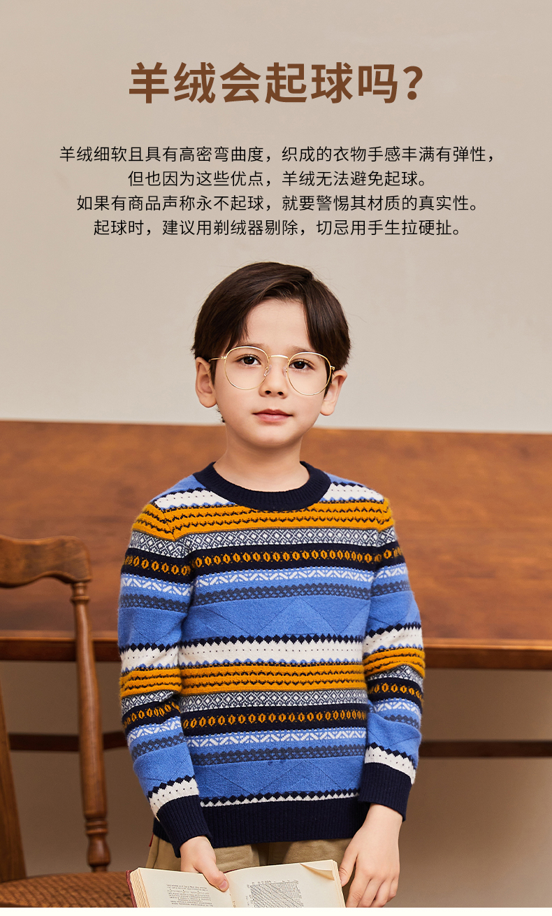 mettekids男童羊绒衫春秋新款条纹儿童毛衣大童圆领休闲针织衫
