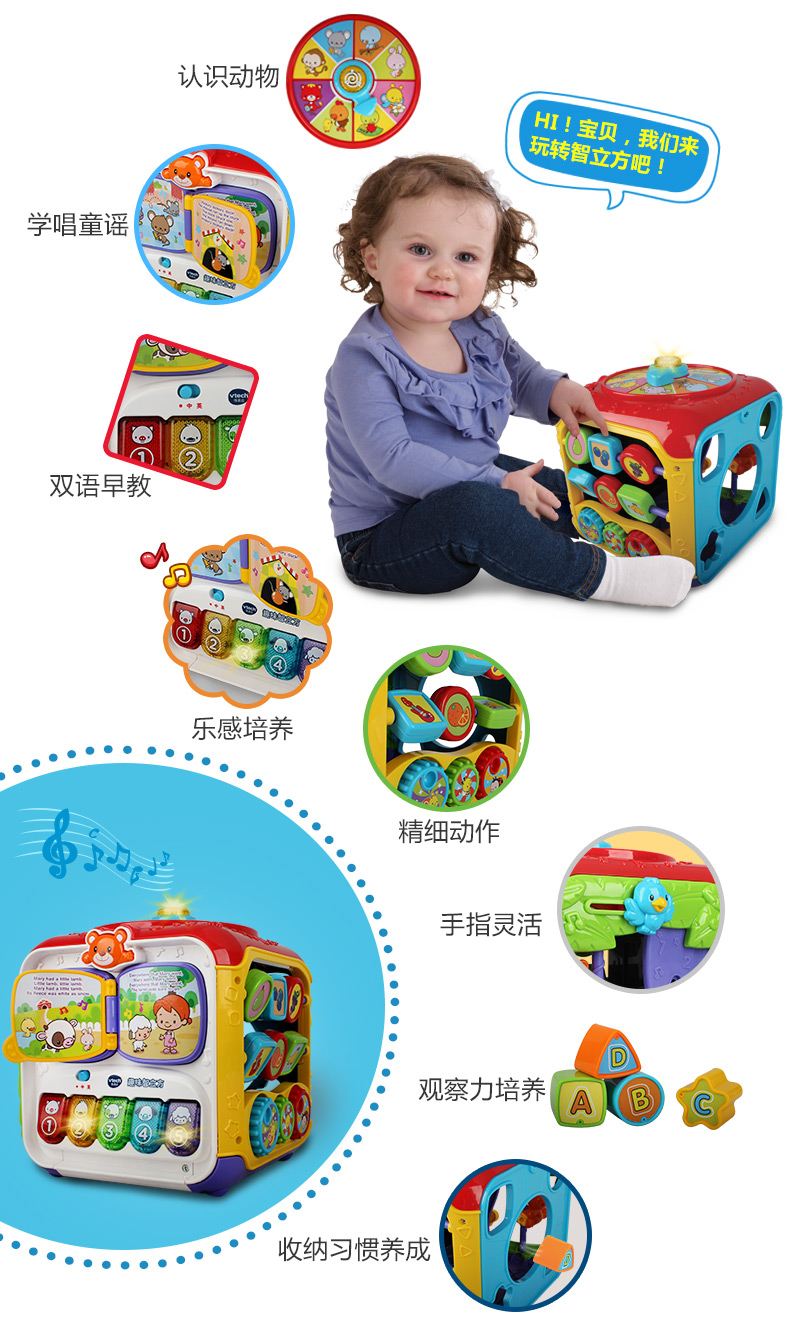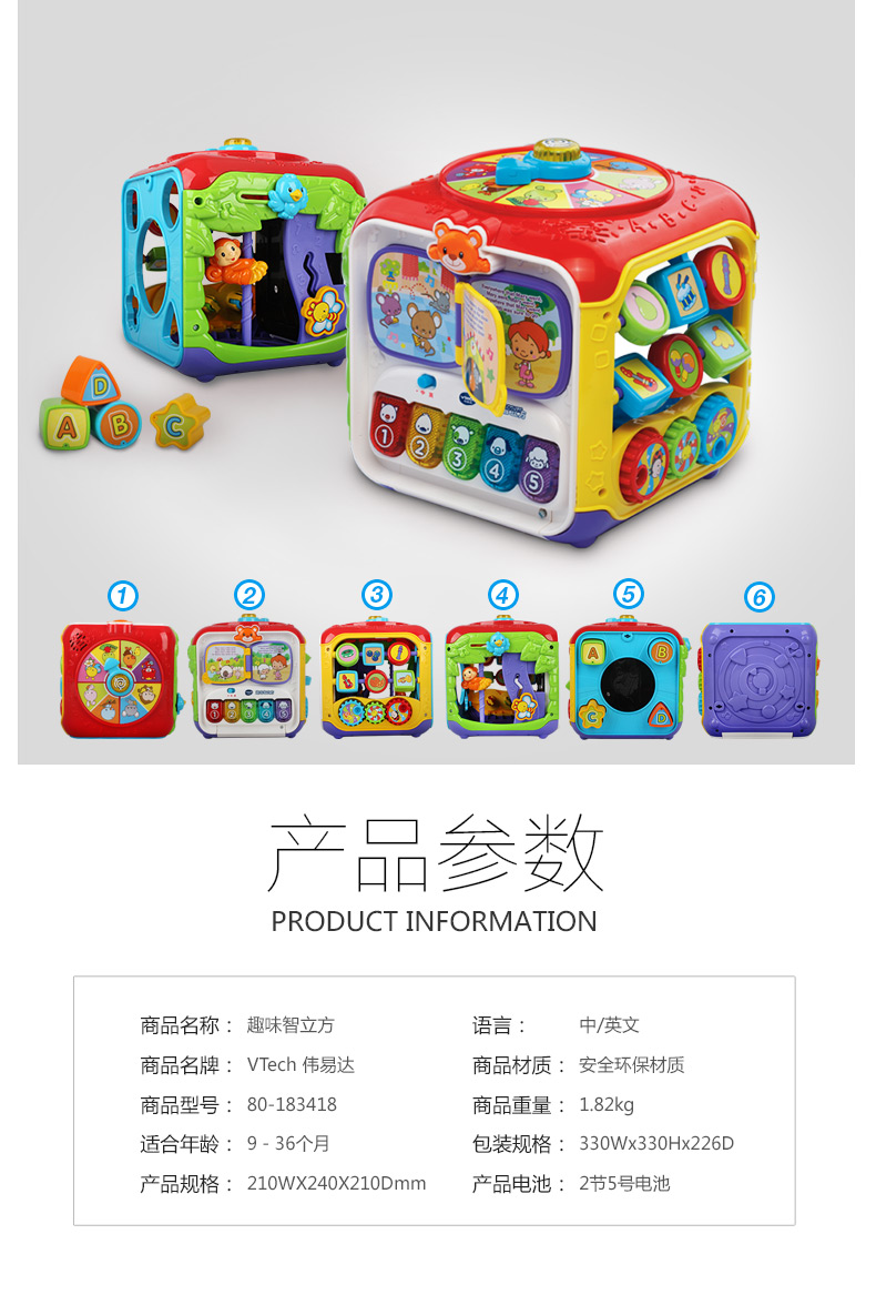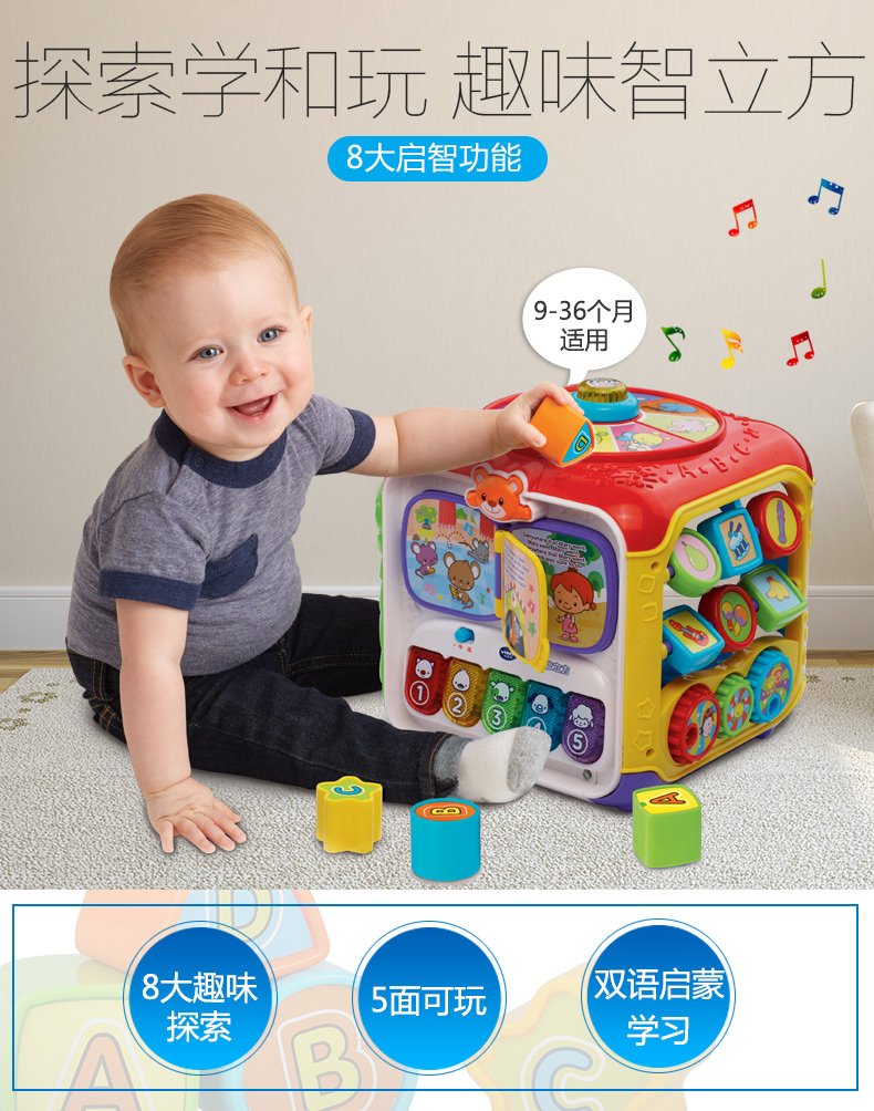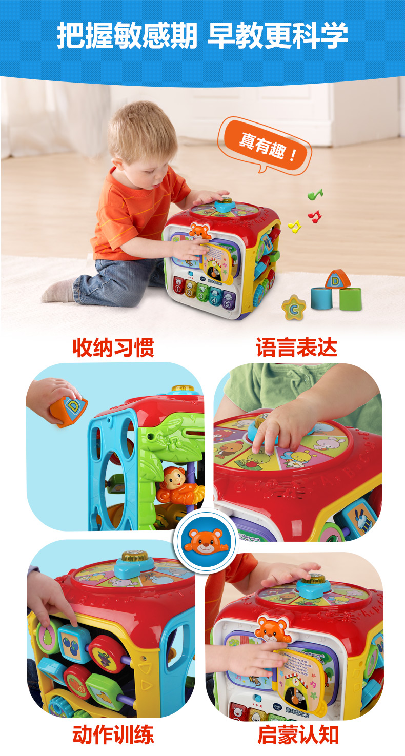 VTech伟易达趣味智立方游戏桌六面盒宝宝益智玩具早教婴儿六面体