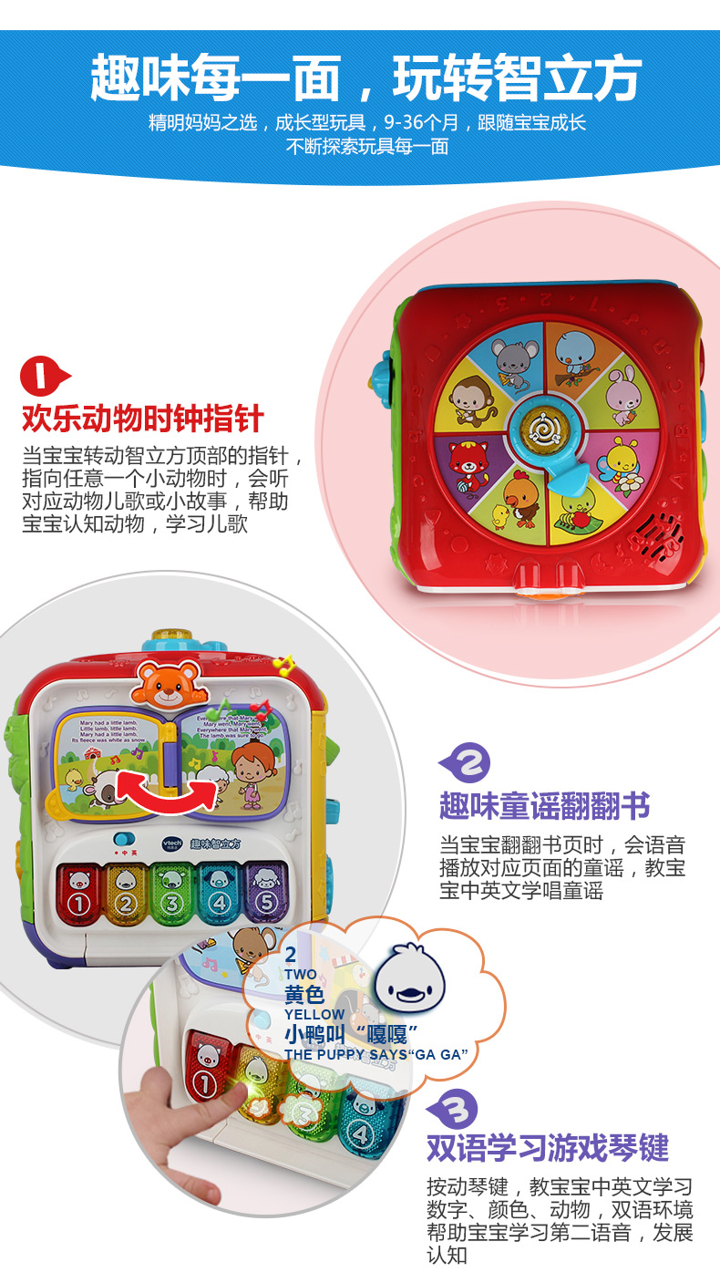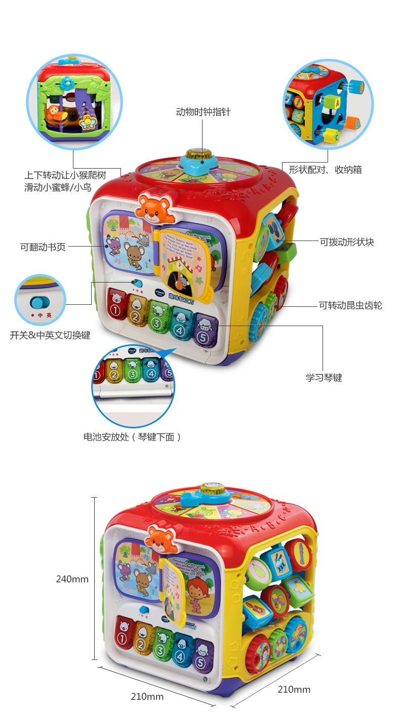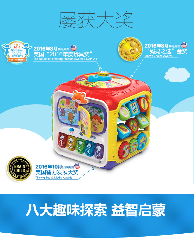VTech伟易达趣味智立方游戏桌六面盒宝宝益智玩具早教婴儿六面体