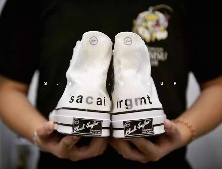 匡威 Sacai 藤原浩 闪电 联名 黑白色 白蓝色 补丁铭牌 缝线 威潮匡威潮匡男女鞋高低帮帆布鞋货号:160329C