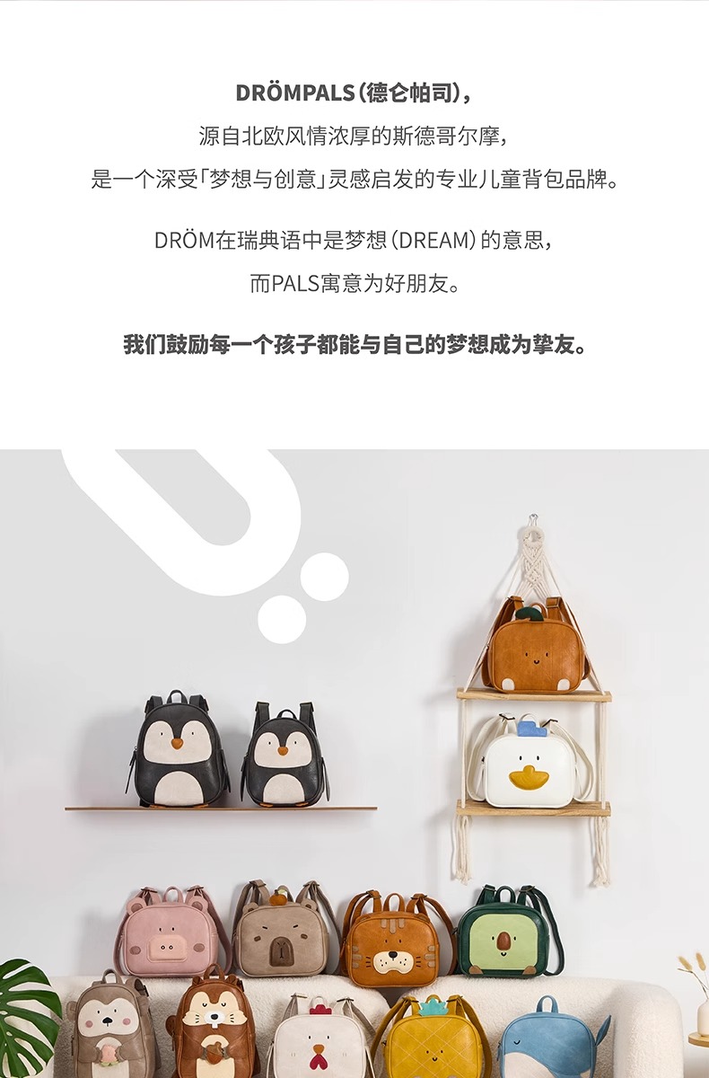 瑞典Drompals 儿童书包幼儿园书包卡通可爱儿童背包潮娃户外出行必备设计师品牌