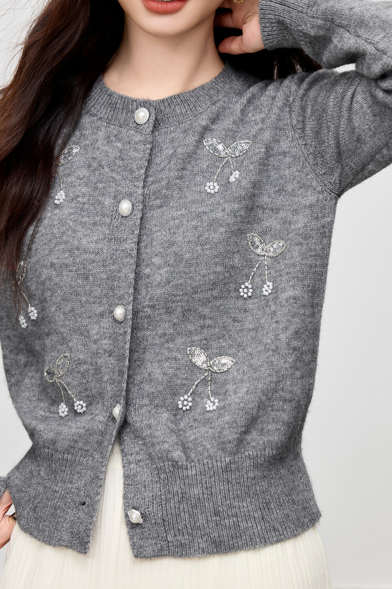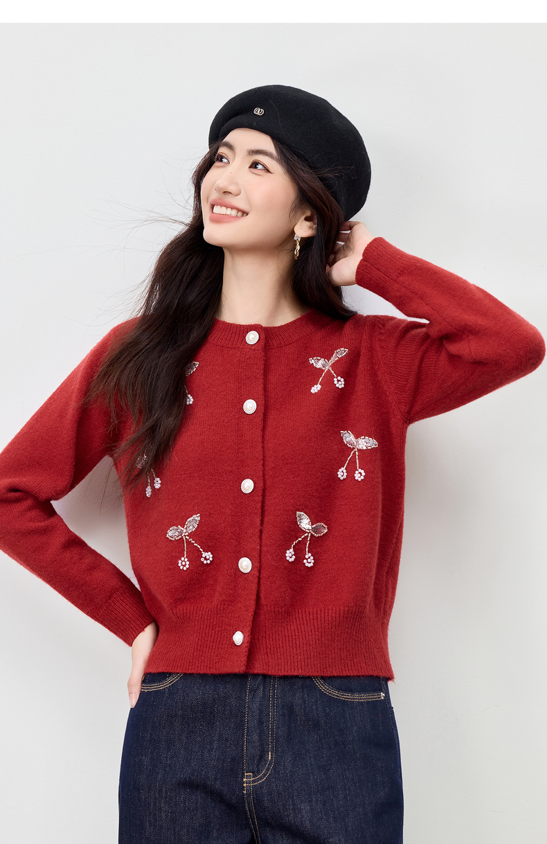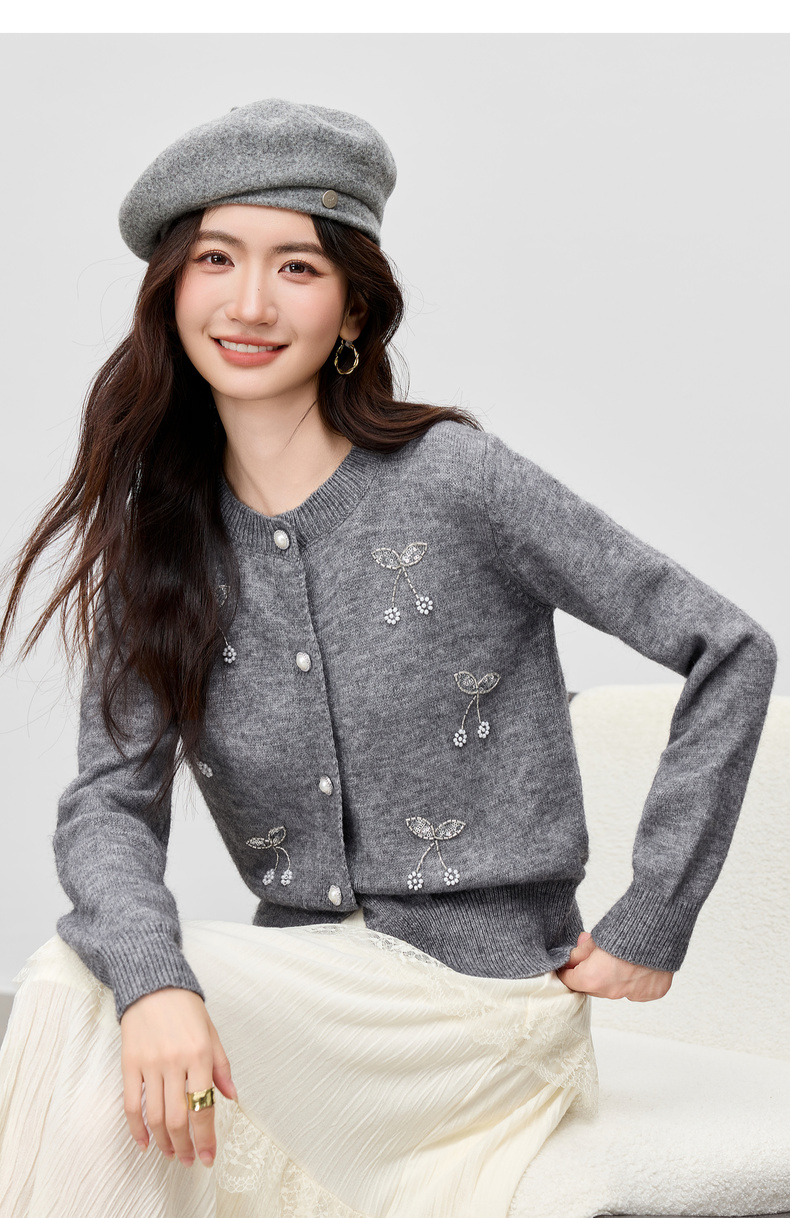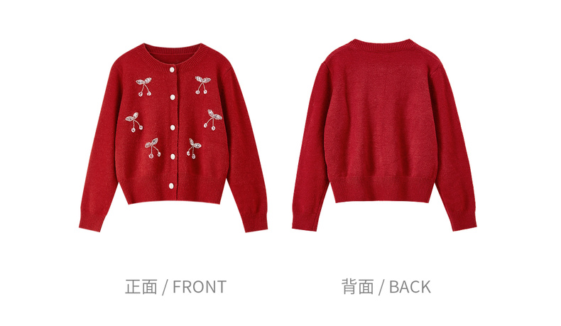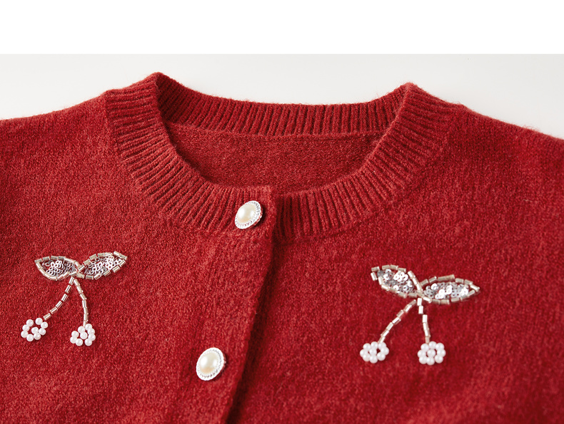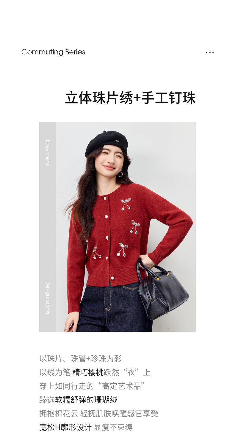 【内购】【樱桃云朵衫】通勤圆领立体珠片绣钉珠宽松软糯珊瑚绒开衫毛衣-W54EB3855