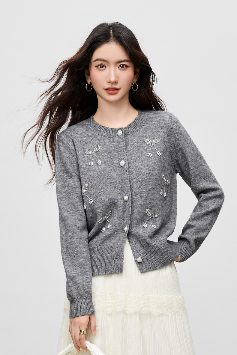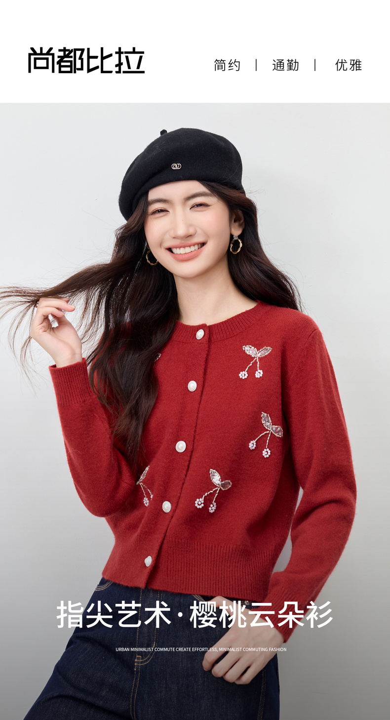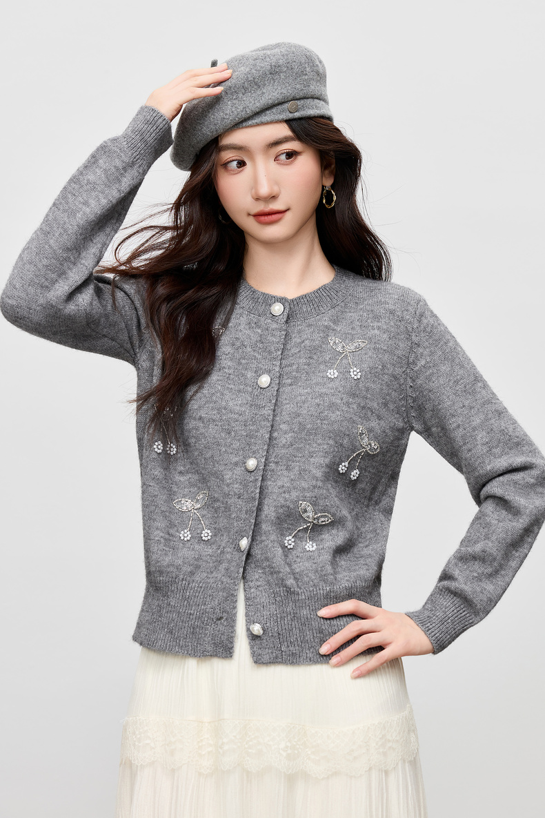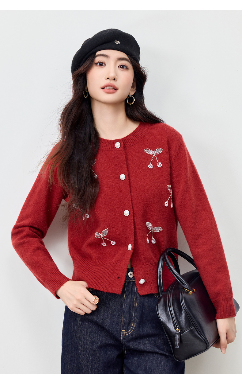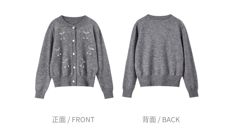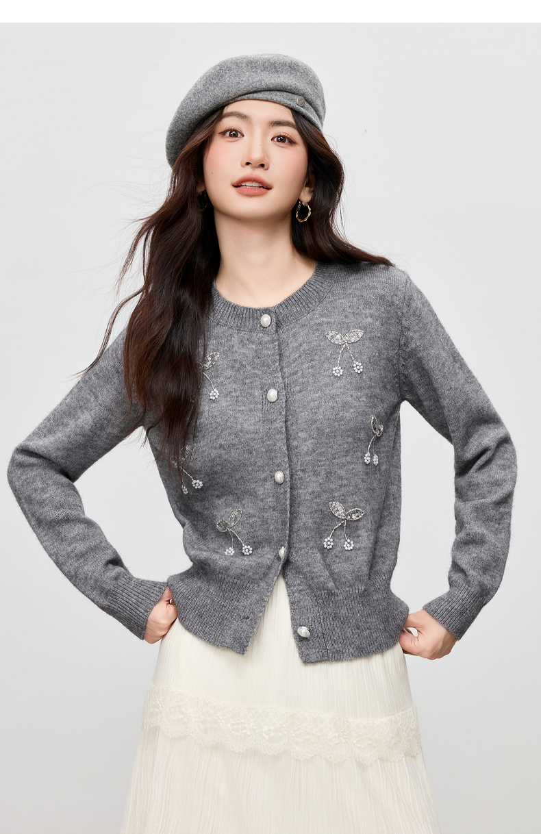 【内购】【樱桃云朵衫】通勤圆领立体珠片绣钉珠宽松软糯珊瑚绒开衫毛衣-W54EB3855