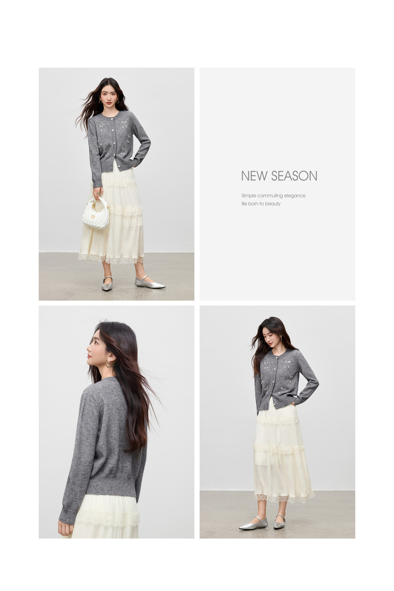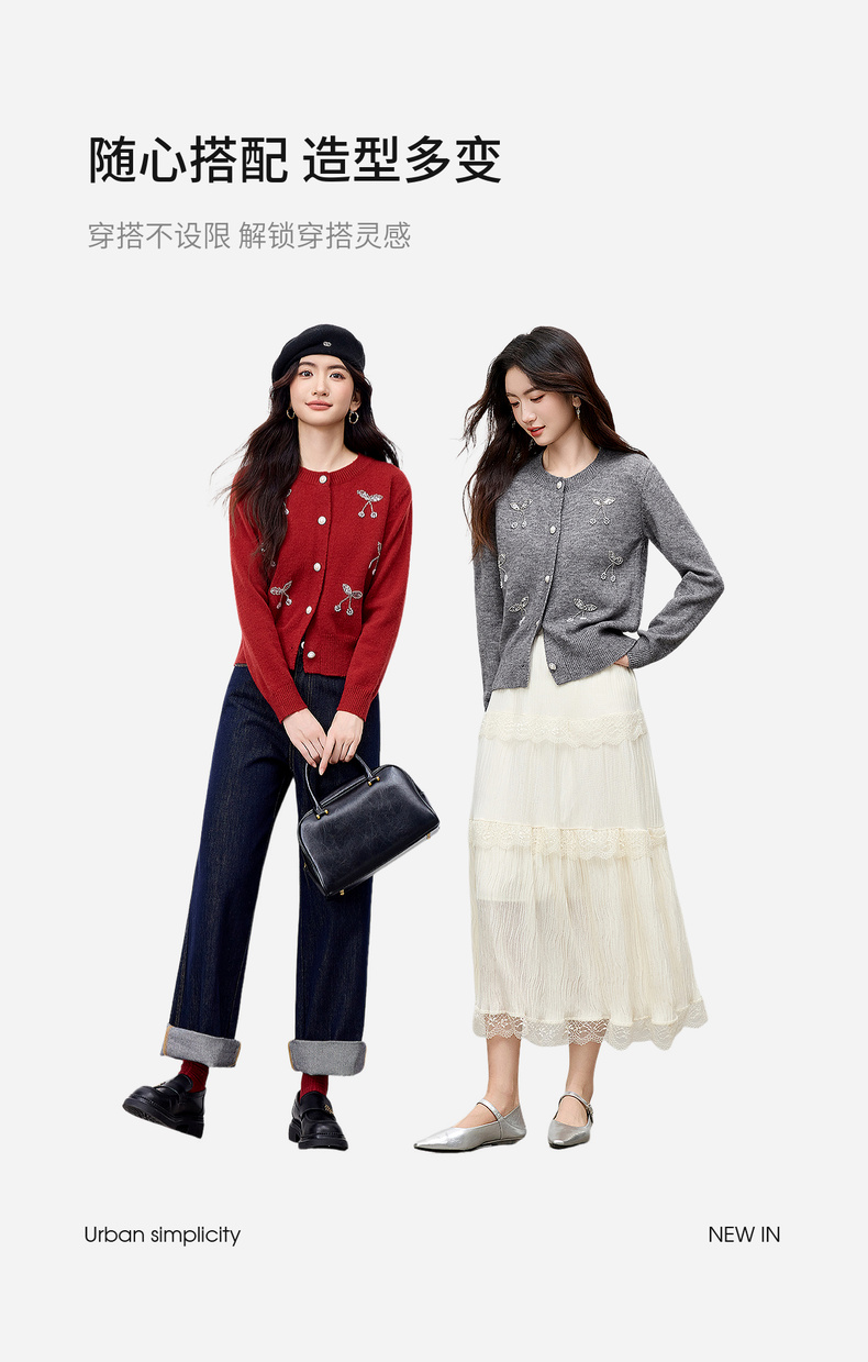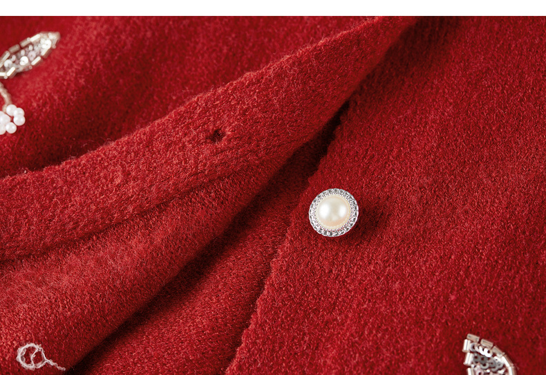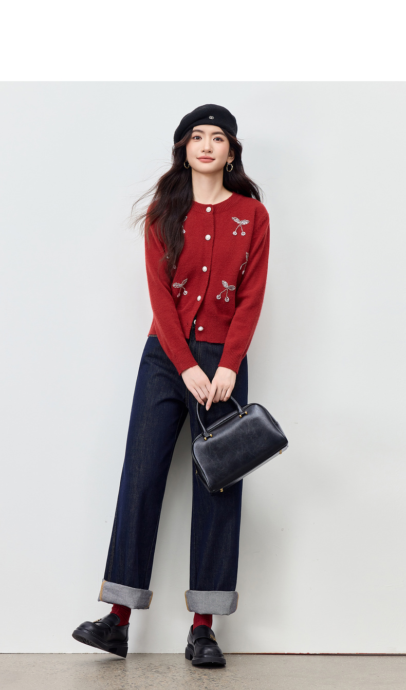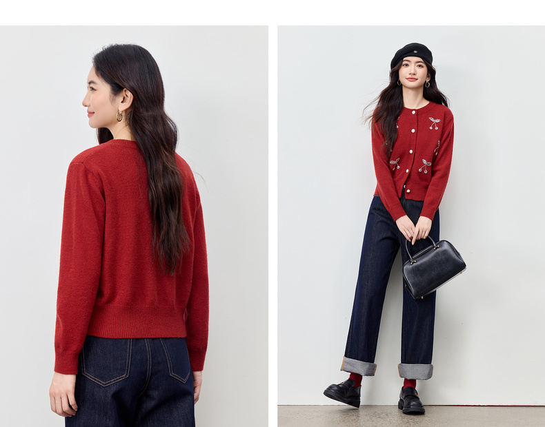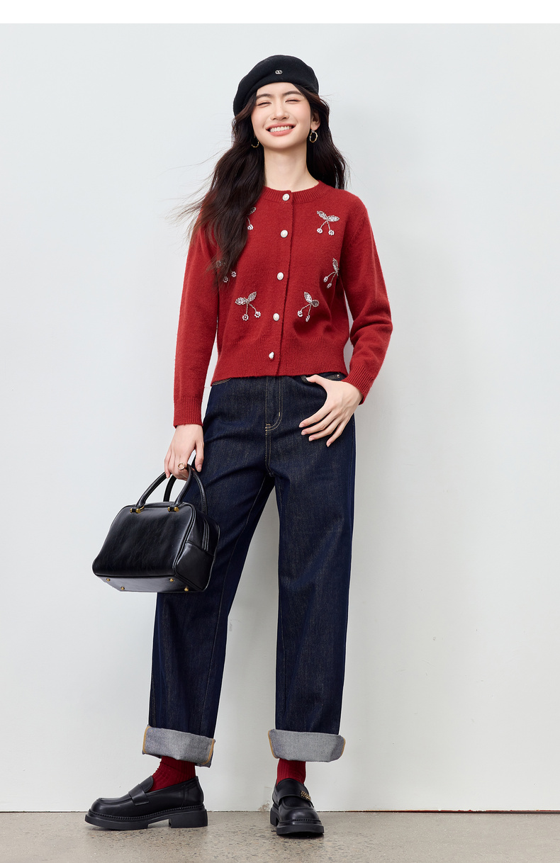 【内购】【樱桃云朵衫】通勤圆领立体珠片绣钉珠宽松软糯珊瑚绒开衫毛衣-W54EB3855