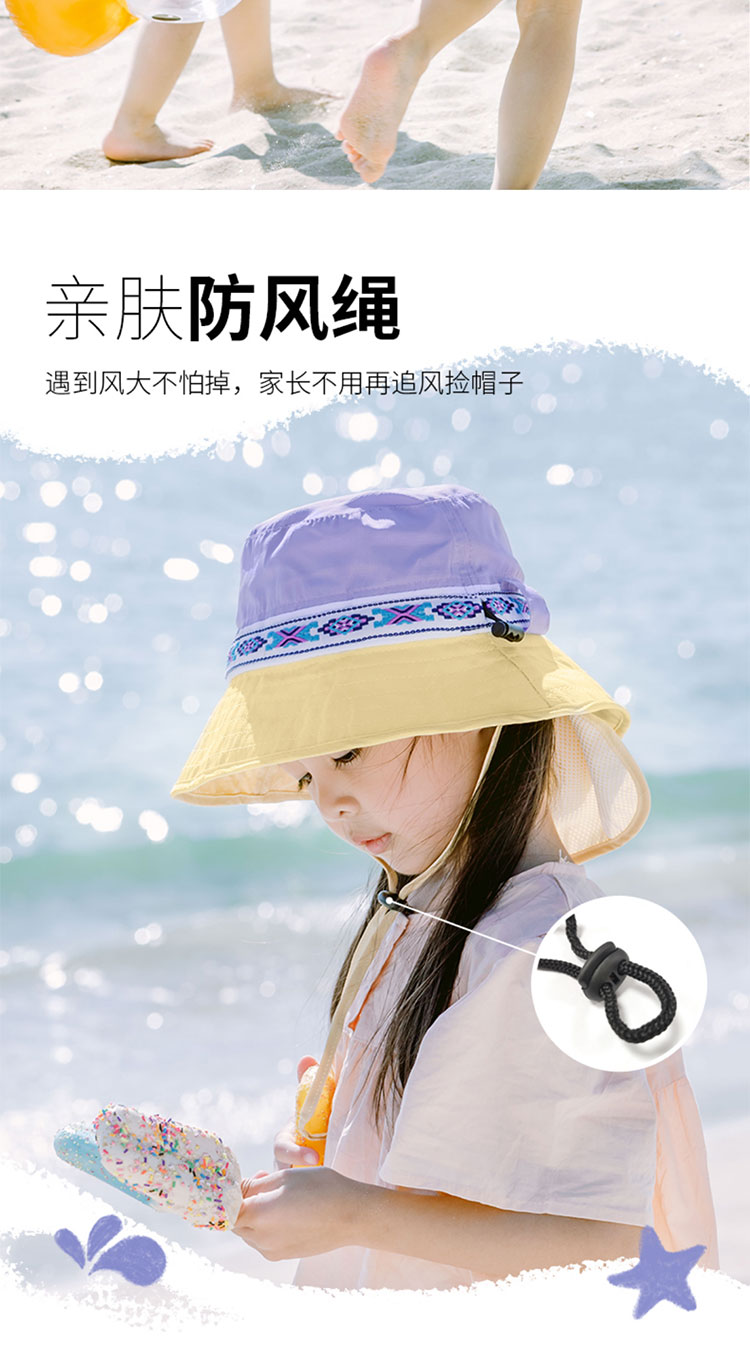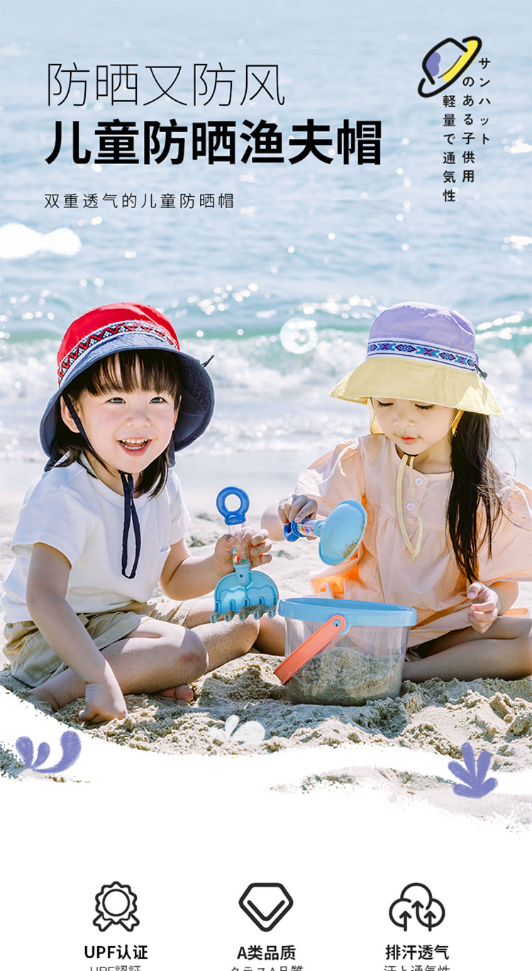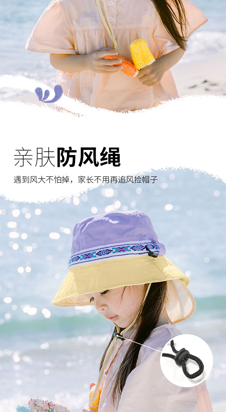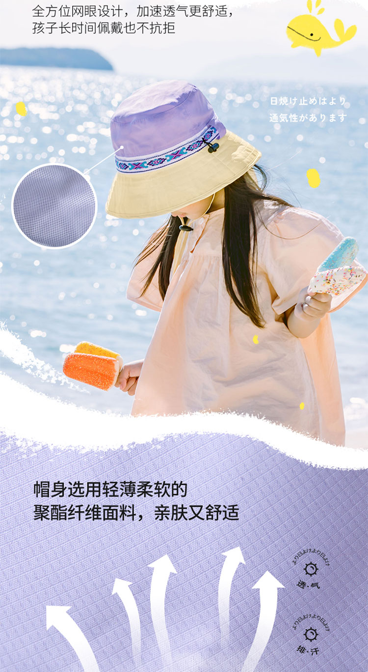 Shukiku 儿童防晒渔夫帽女童春夏防晒帽季防紫外线透气渔夫遮阳帽男1-10岁