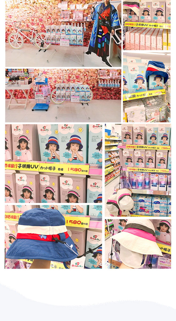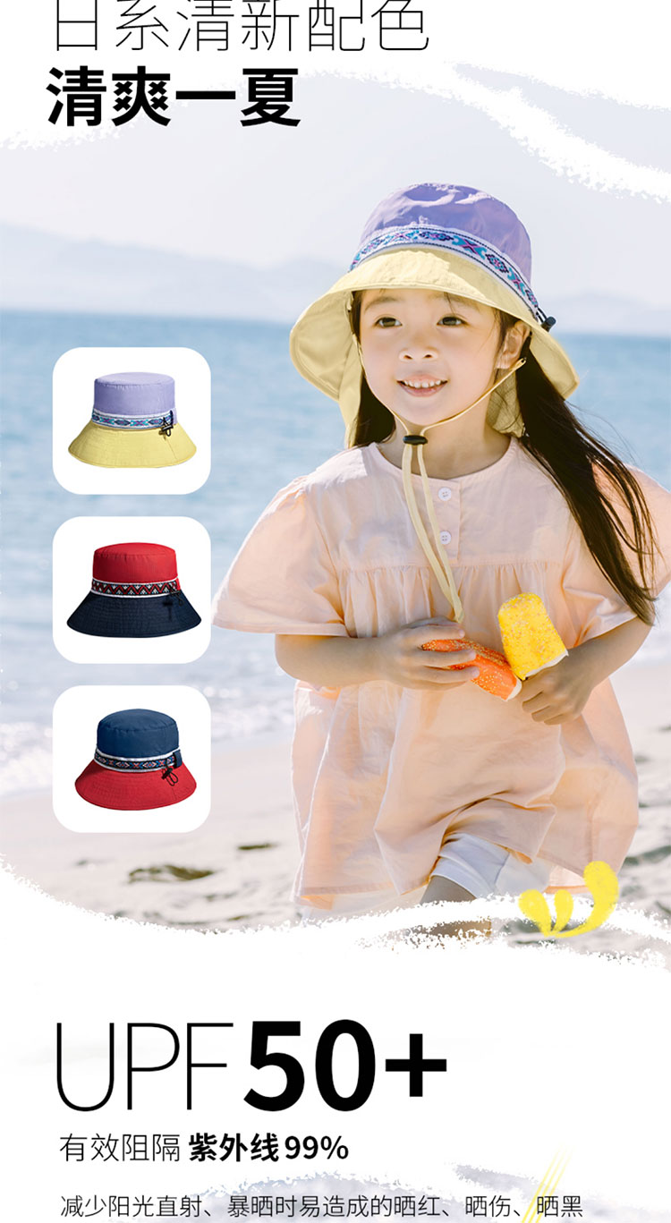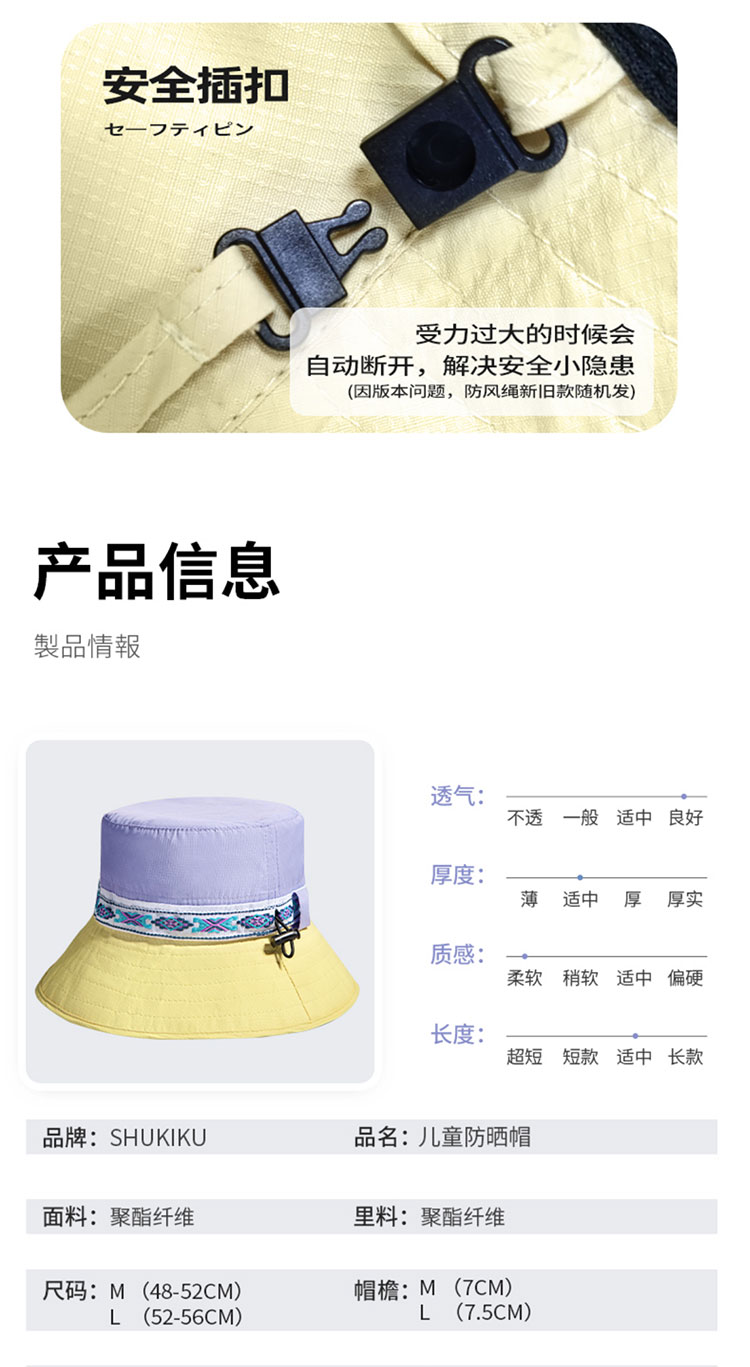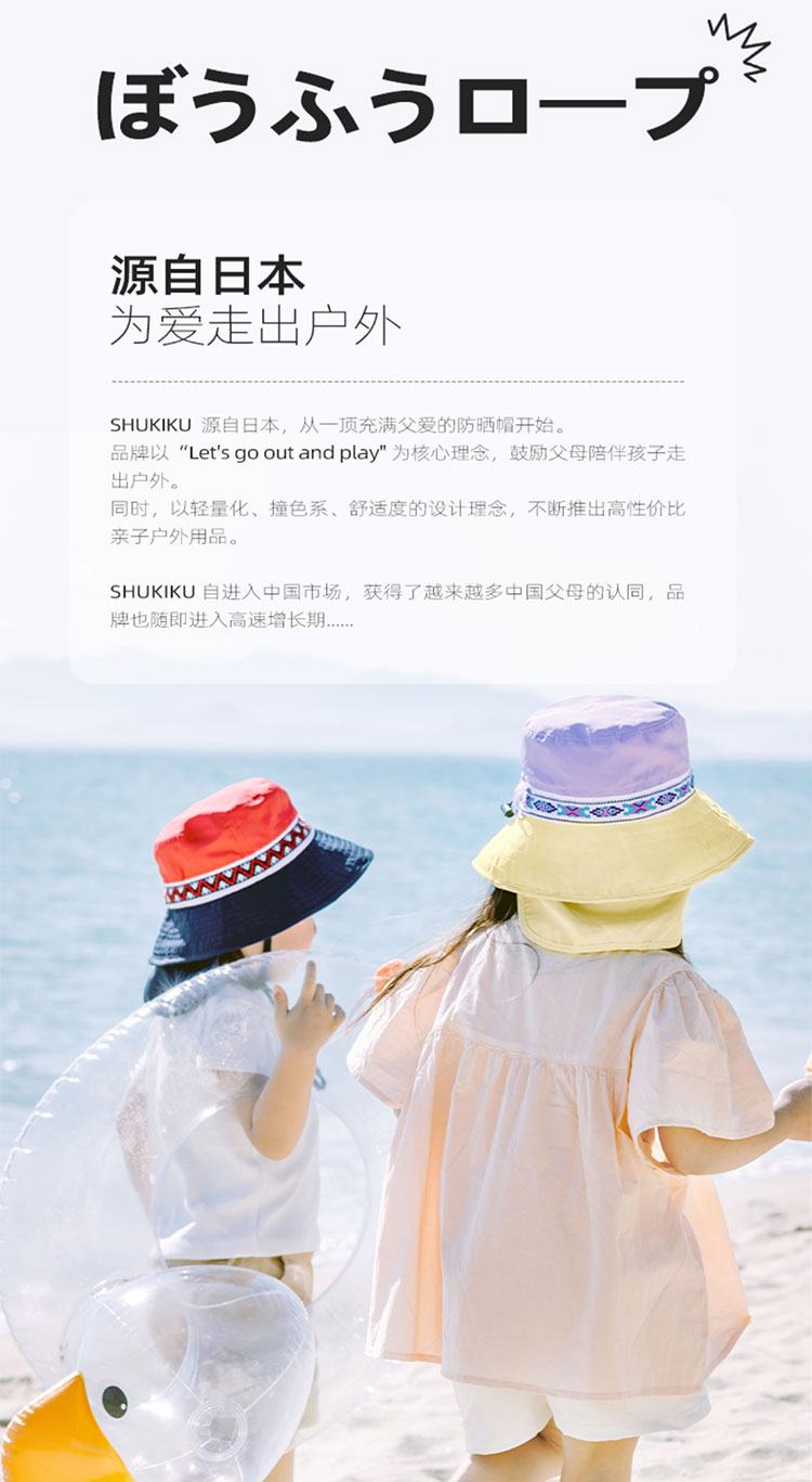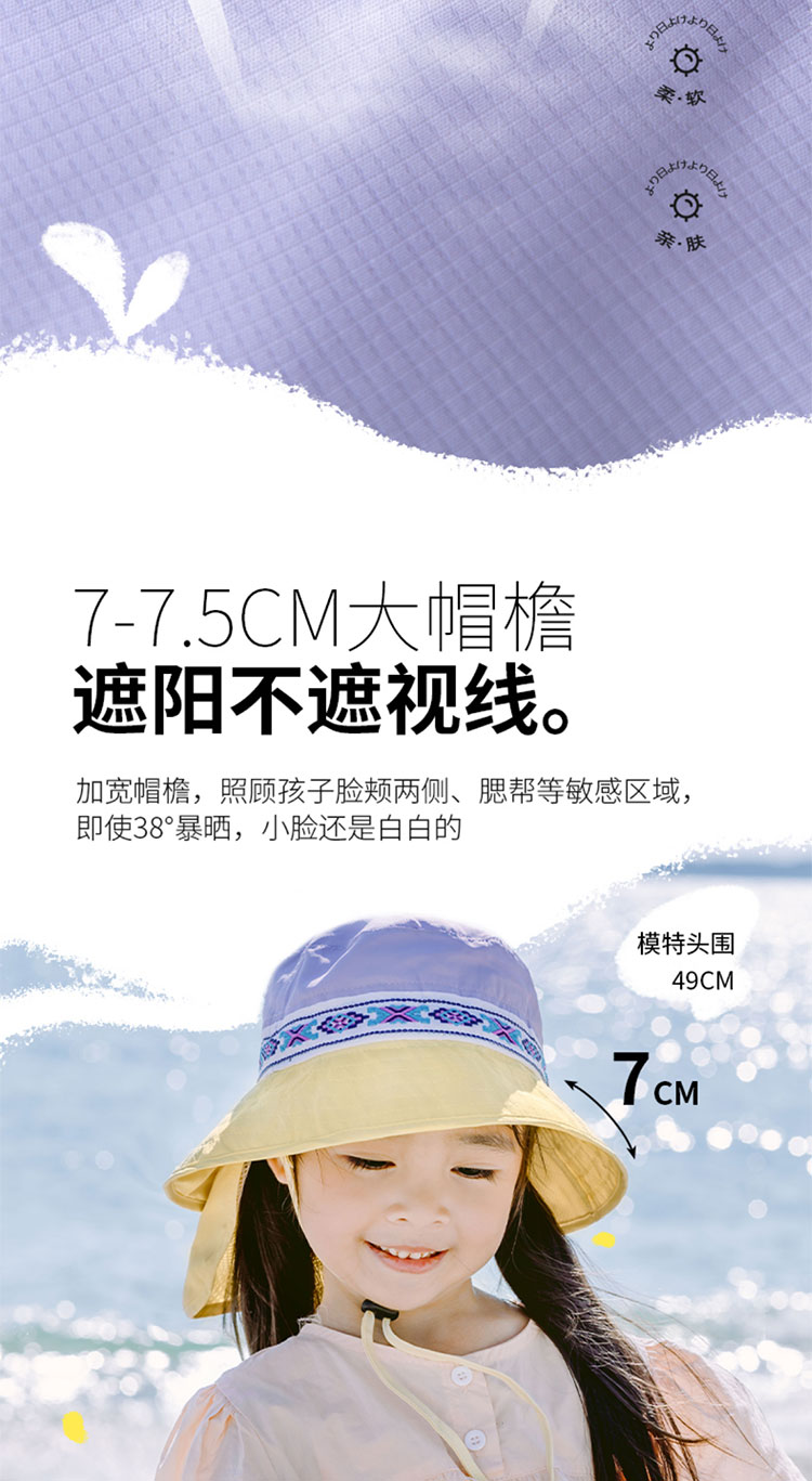 Shukiku 儿童防晒渔夫帽女童春夏防晒帽季防紫外线透气渔夫遮阳帽男1-10岁