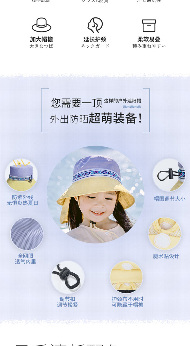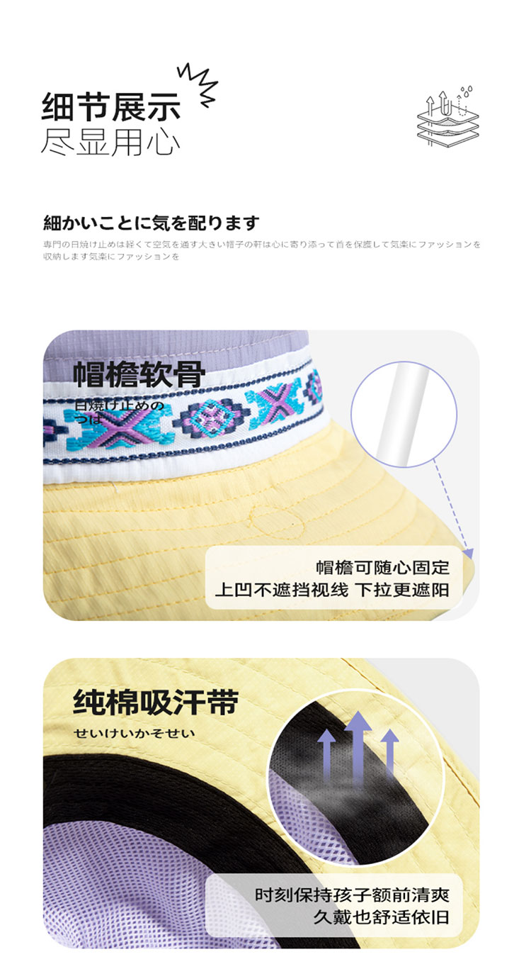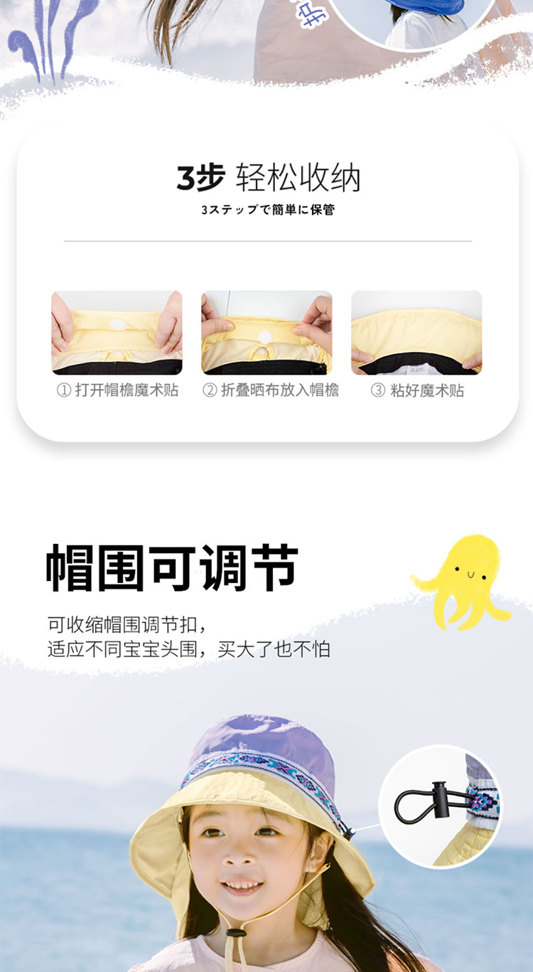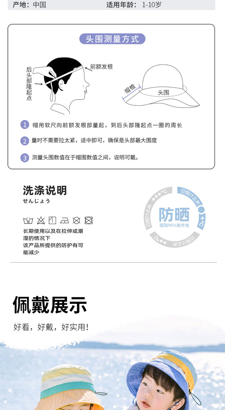 Shukiku 儿童防晒渔夫帽女童春夏防晒帽季防紫外线透气渔夫遮阳帽男1-10岁