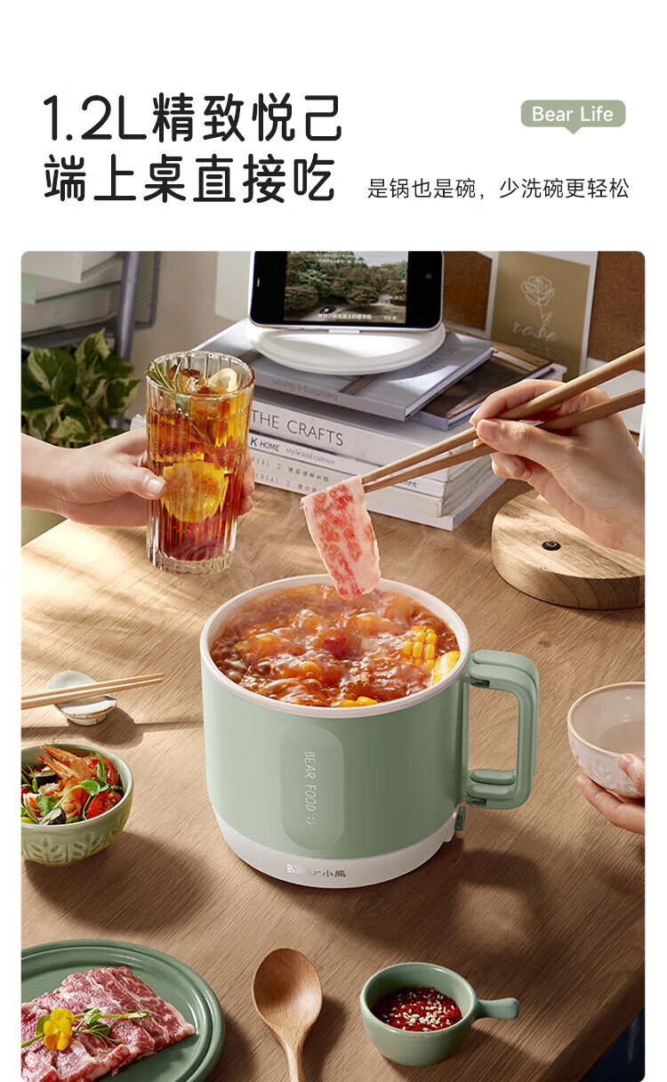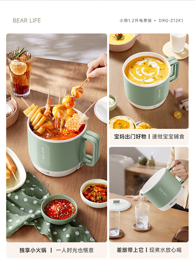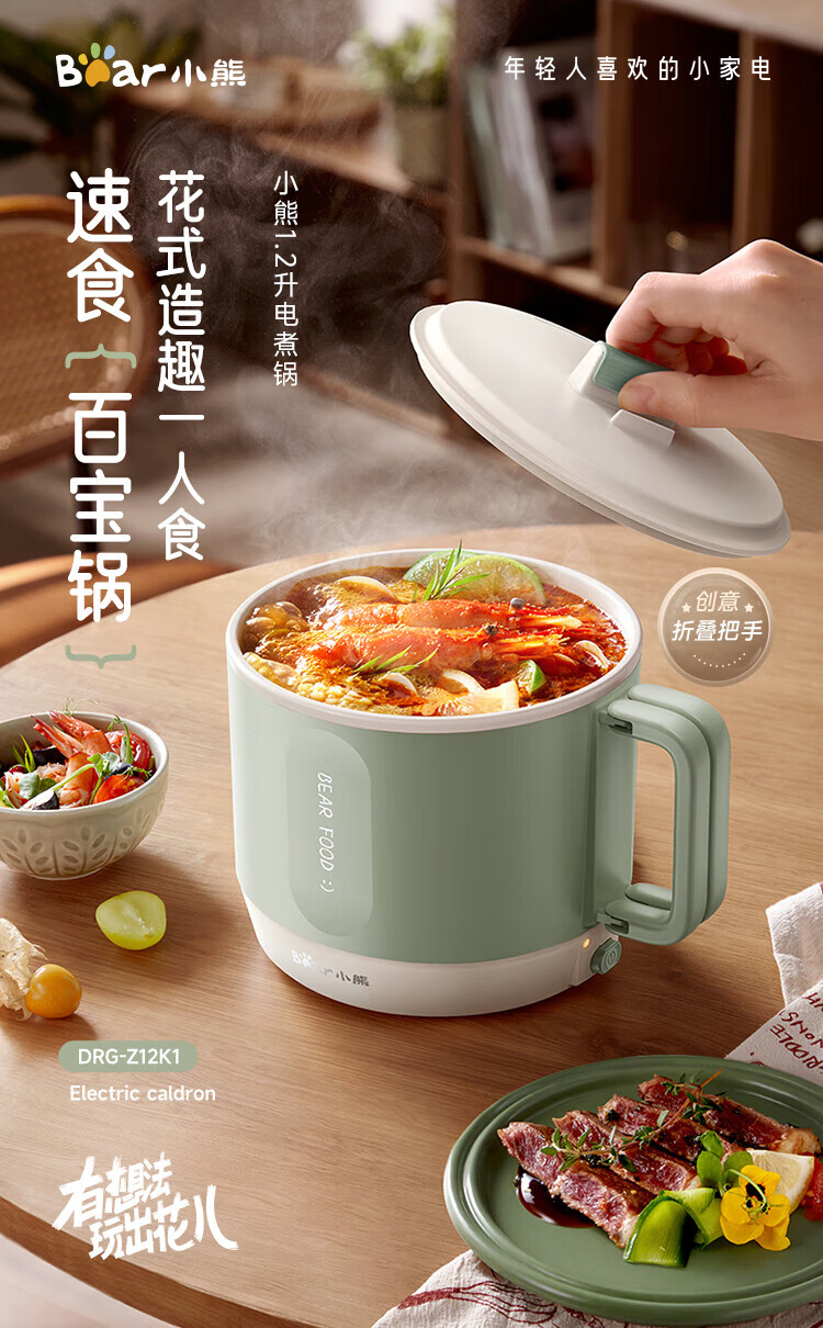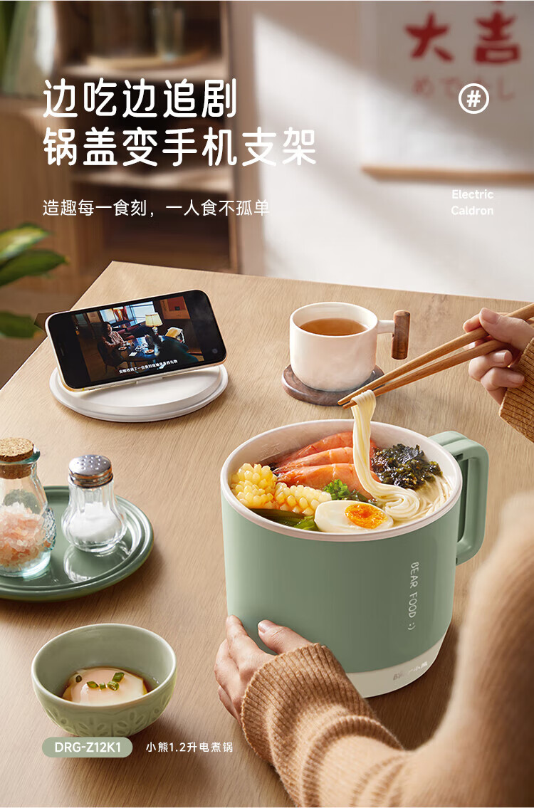 小熊(Bear)小熊(Bear)电煮锅 电热锅 学生宿舍泡面锅 小电锅 电热锅 多功能多用途小煮锅一人食小火锅 DRG-Z12K1煮涮焖炖 1.2L