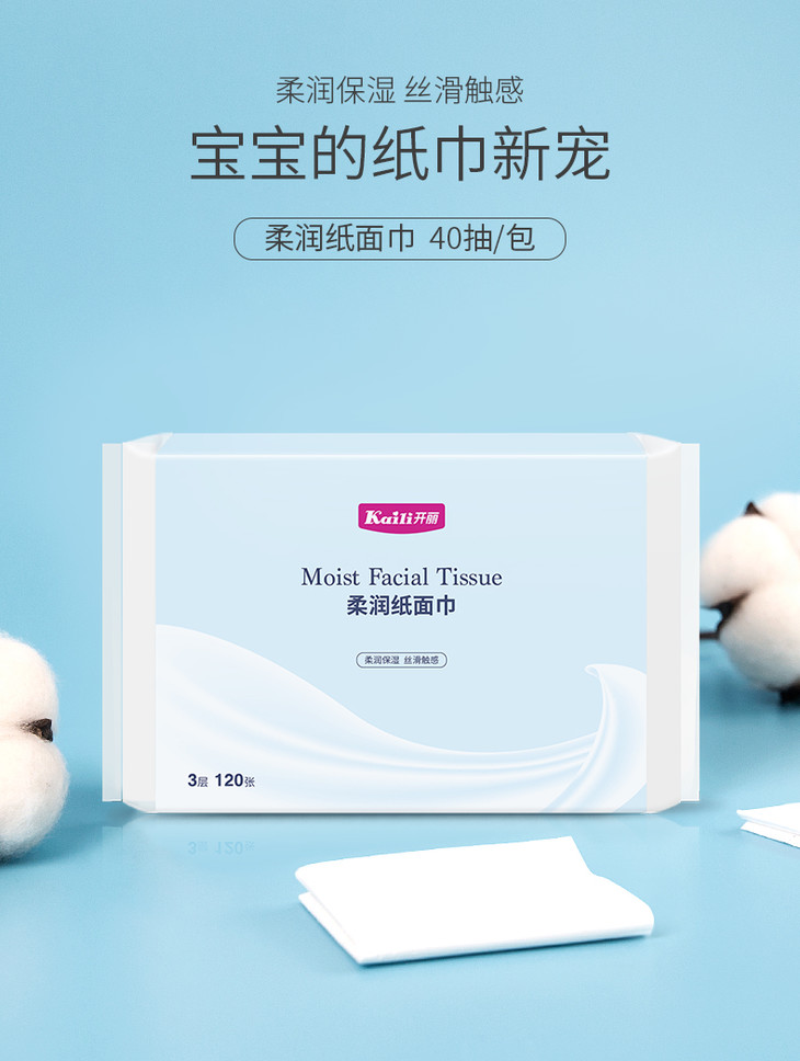 【开丽】柔润保湿纸面巾40抽*5包便携装