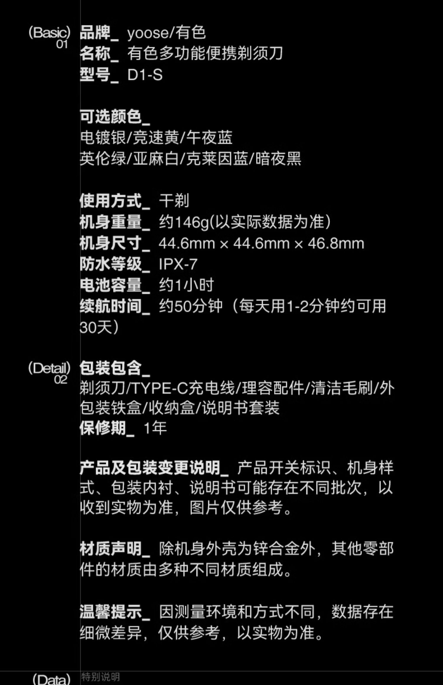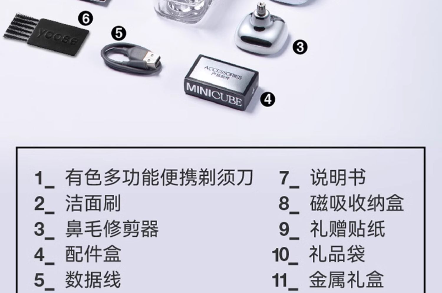 Yoose/有色 D1-S 小魔方便携剃须刀 多功能便携剃须刀男士理容套装电动刮胡刀迷你版