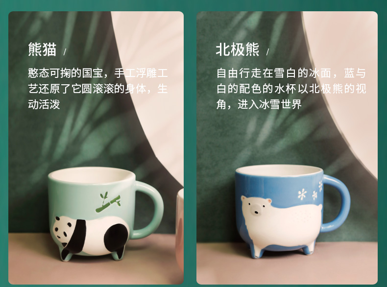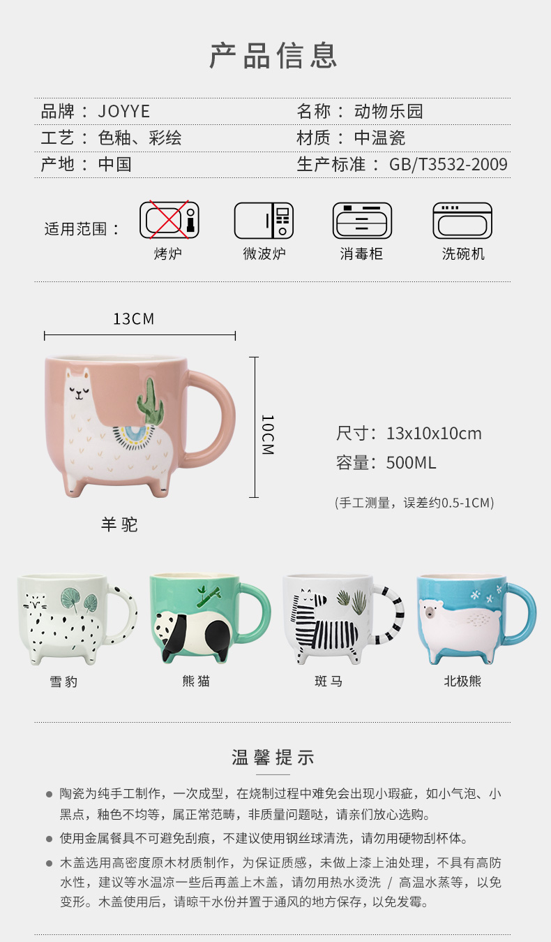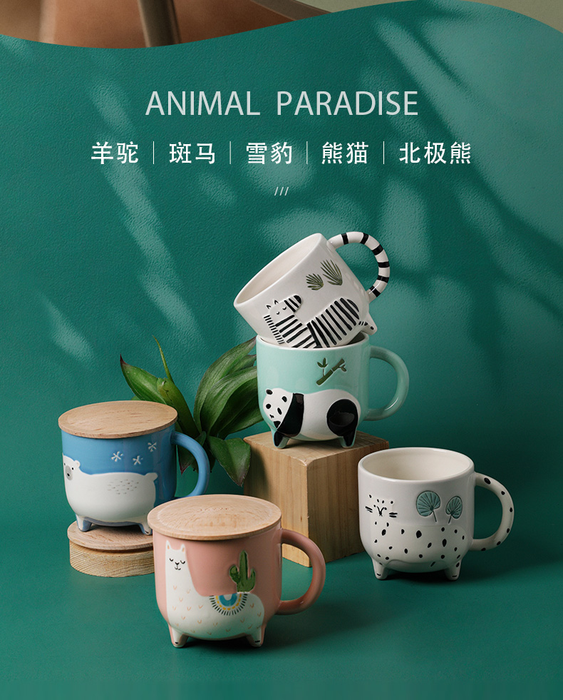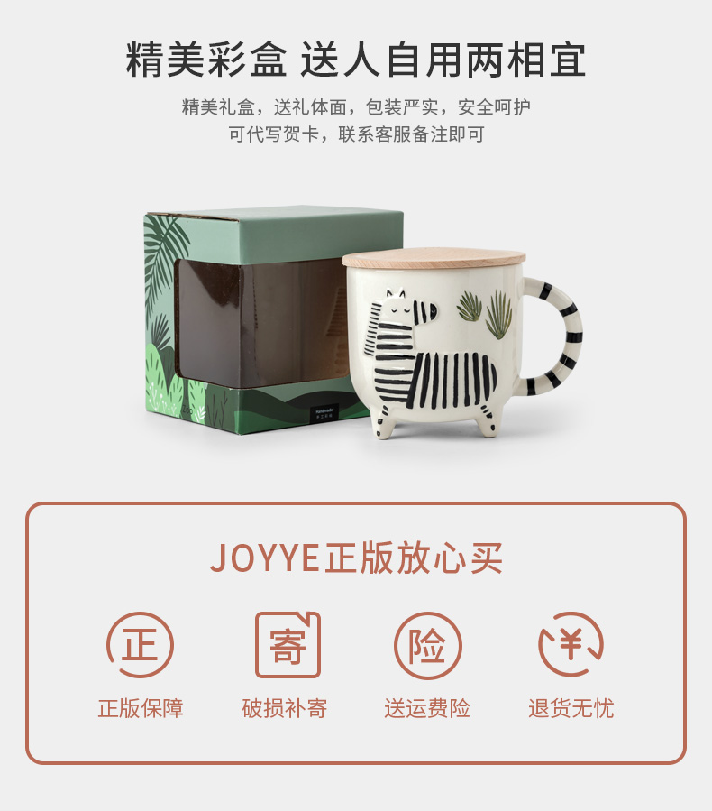 JOYYE卓艺单品动物乐园杯TFC0119227创意杯马克杯大容量水杯男杯子女可爱陶瓷杯少女燕麦杯早餐杯