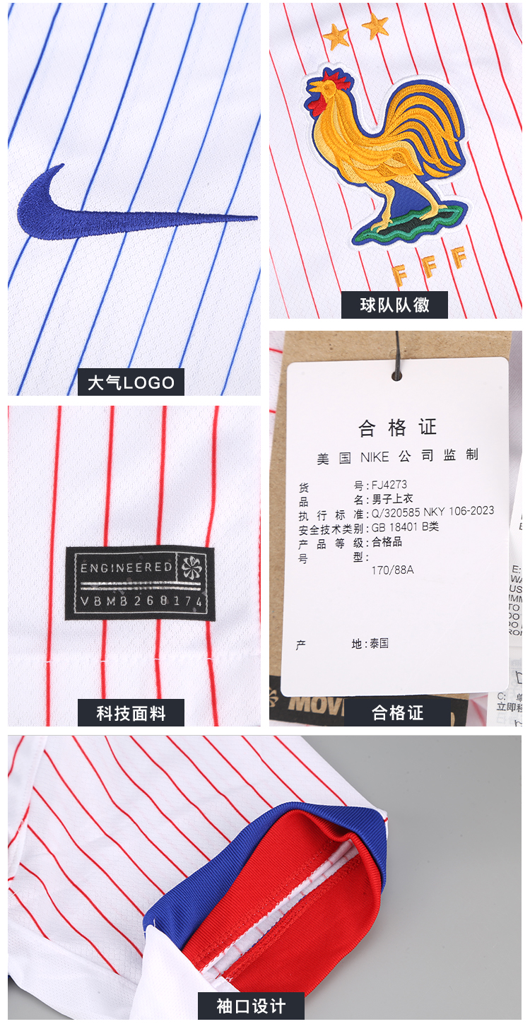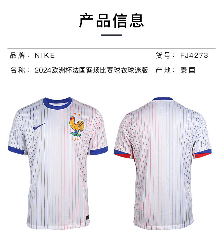 小李子NIKE耐克2024欧洲杯法国客场比赛球迷版球衣成人男FJ4273-100
