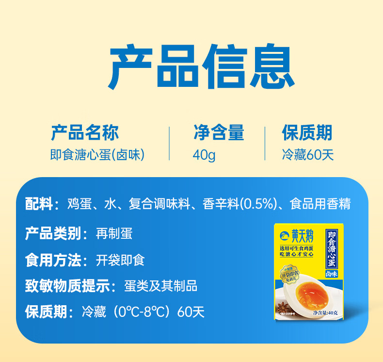 黄天鹅 卤味免剥壳即食溏心蛋 40g/盒