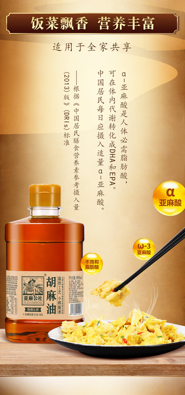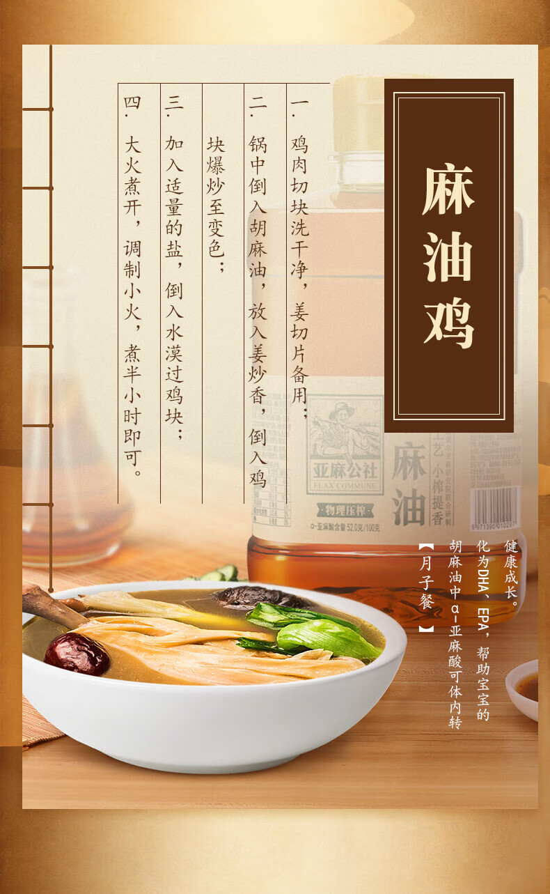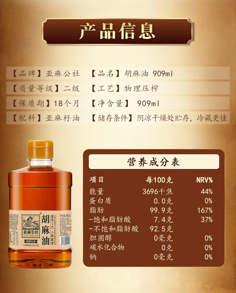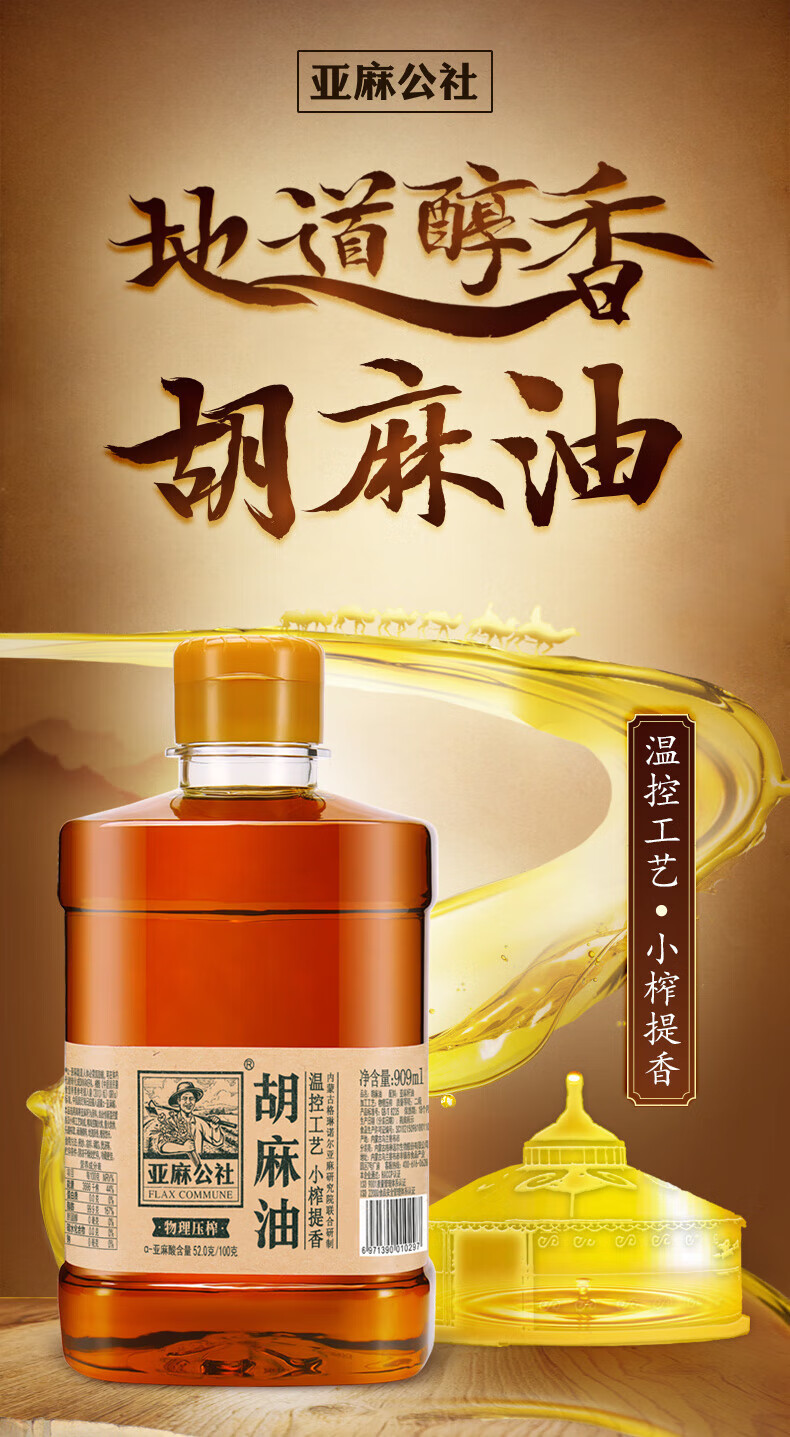 亚麻公社胡麻油909ml/桶 烹饪食用油
