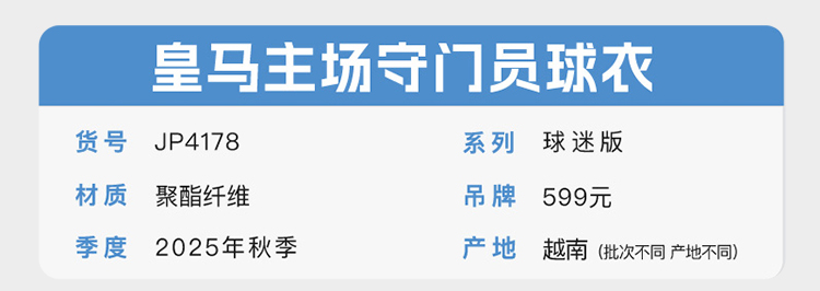 小李子阿迪达斯25/26赛季皇马球迷版主场守门员短袖比赛球衣门将服JP4178