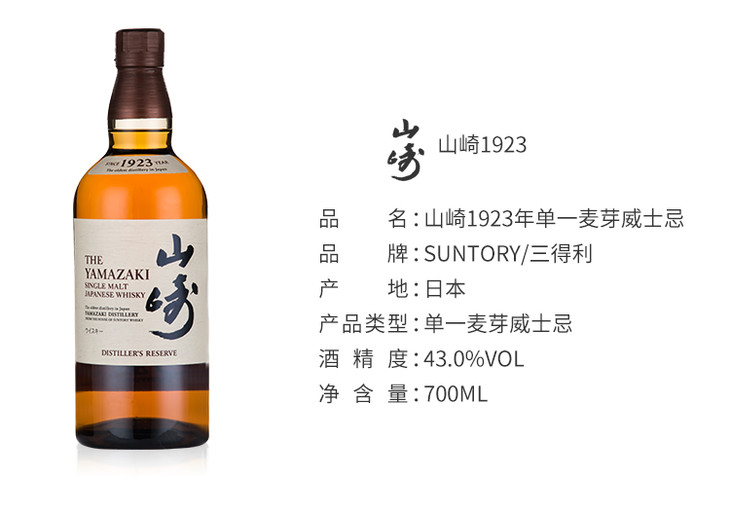 日本直邮 山崎 1923年单一麦芽威士忌酒 700ml