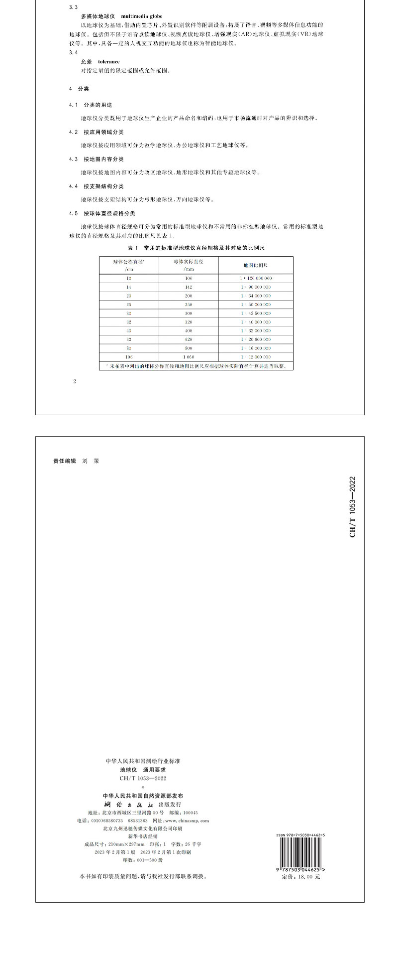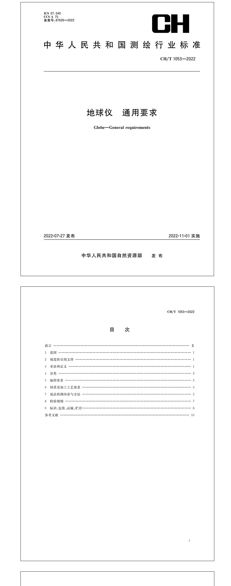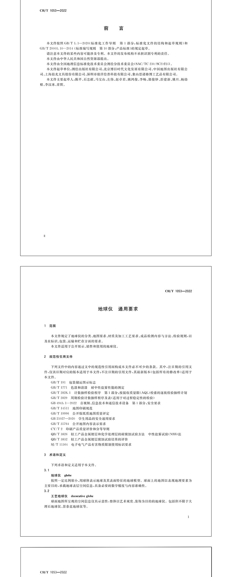 测绘行业标准 地球仪 通用要求——CH/T 1053—2022