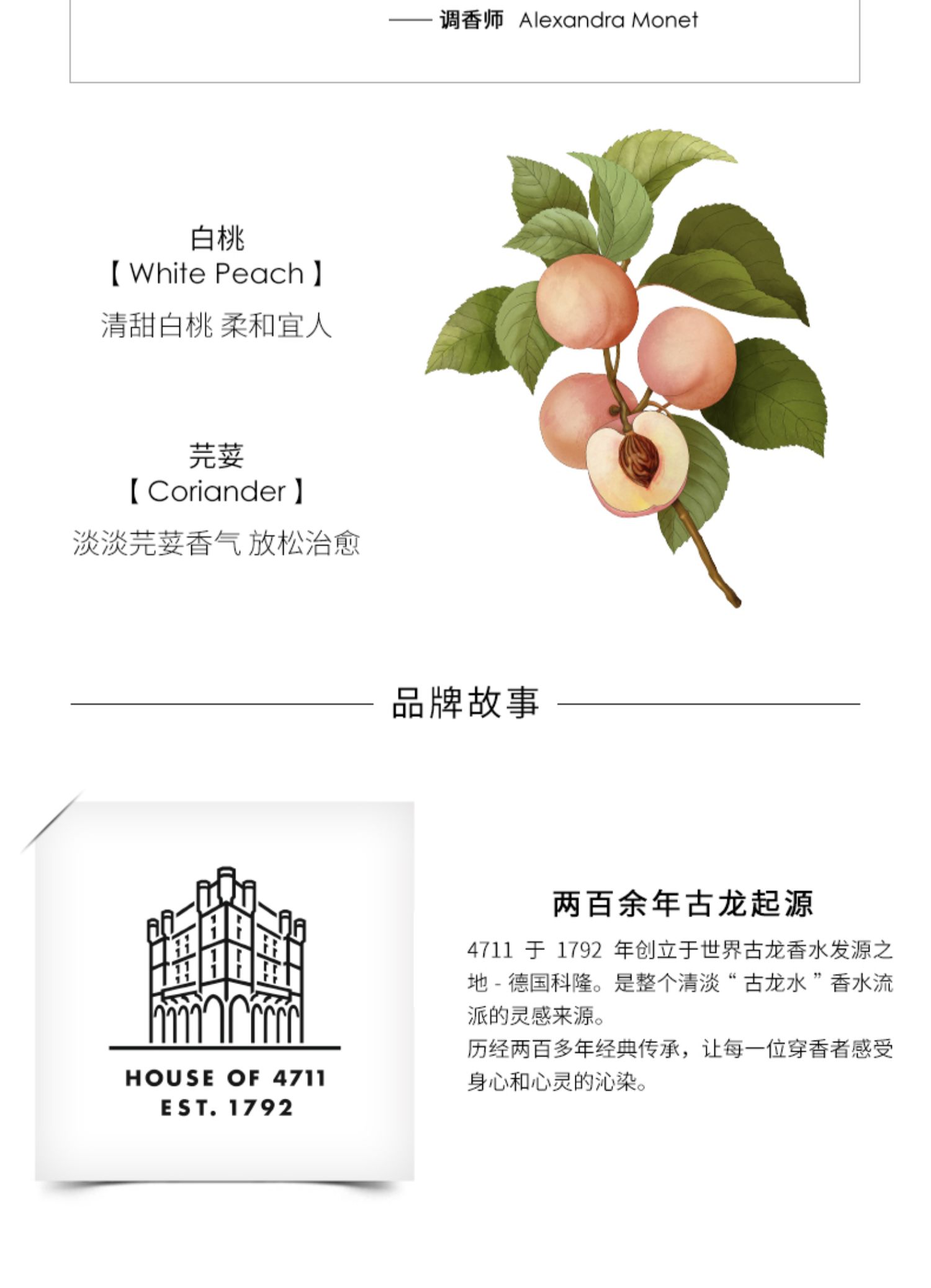 [效期26年/2/27]4711 - 白桃与香菜(白桃芫荽)中性古龙香水