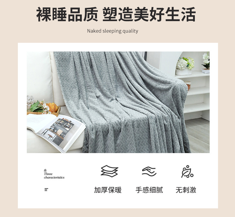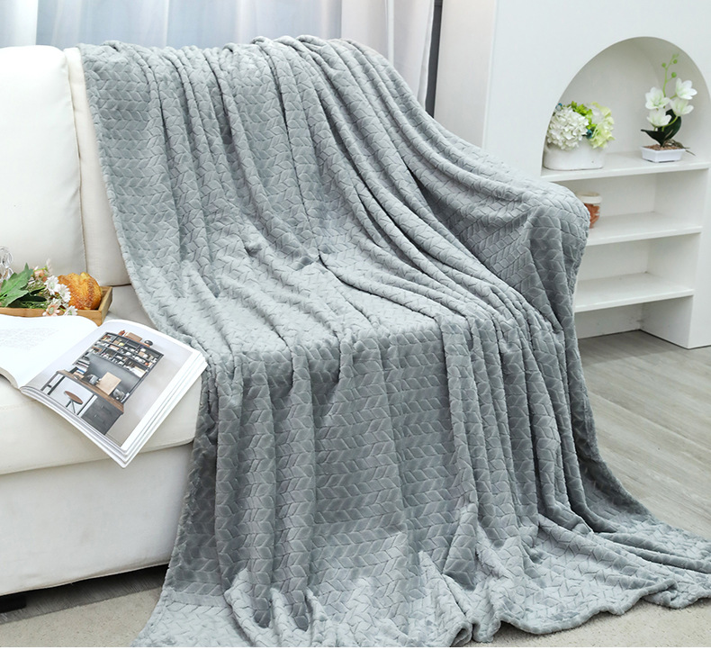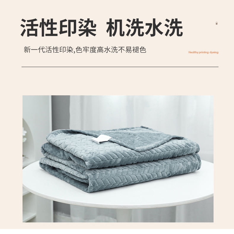 丝带包装礼品毯子 冬季高克重纯色提花珊瑚绒毛毯 加厚保暖毯子 办公室午睡毯 沙发盖毯 学生午休毯