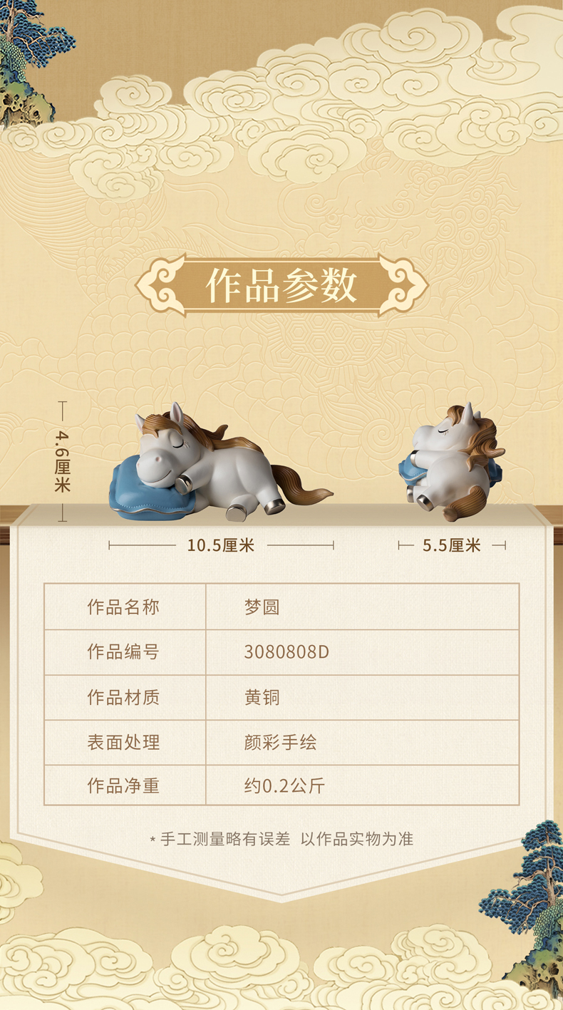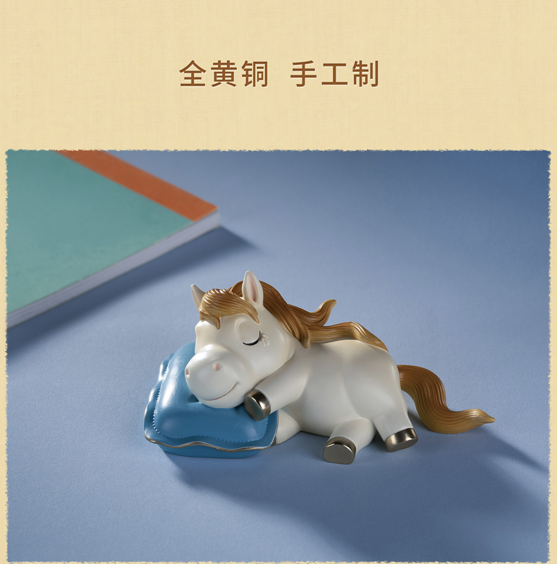 铜师傅《梦圆》创意可爱马摆件 治愈系桌面装饰品 工位解压礼品