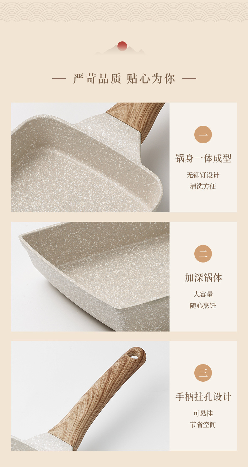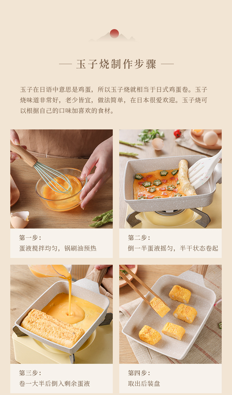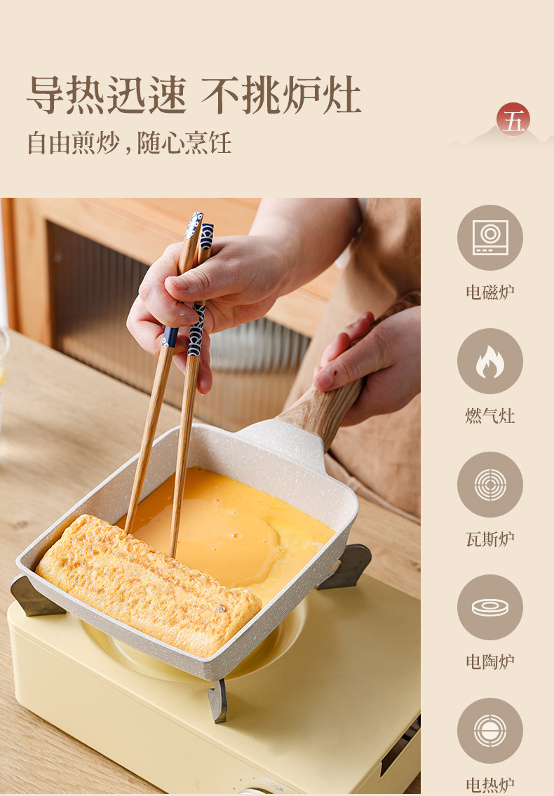日本玉子烧煎锅平底千层饼不粘锅麦饭石方形鸡蛋卷牛排厚蛋烧煎盘