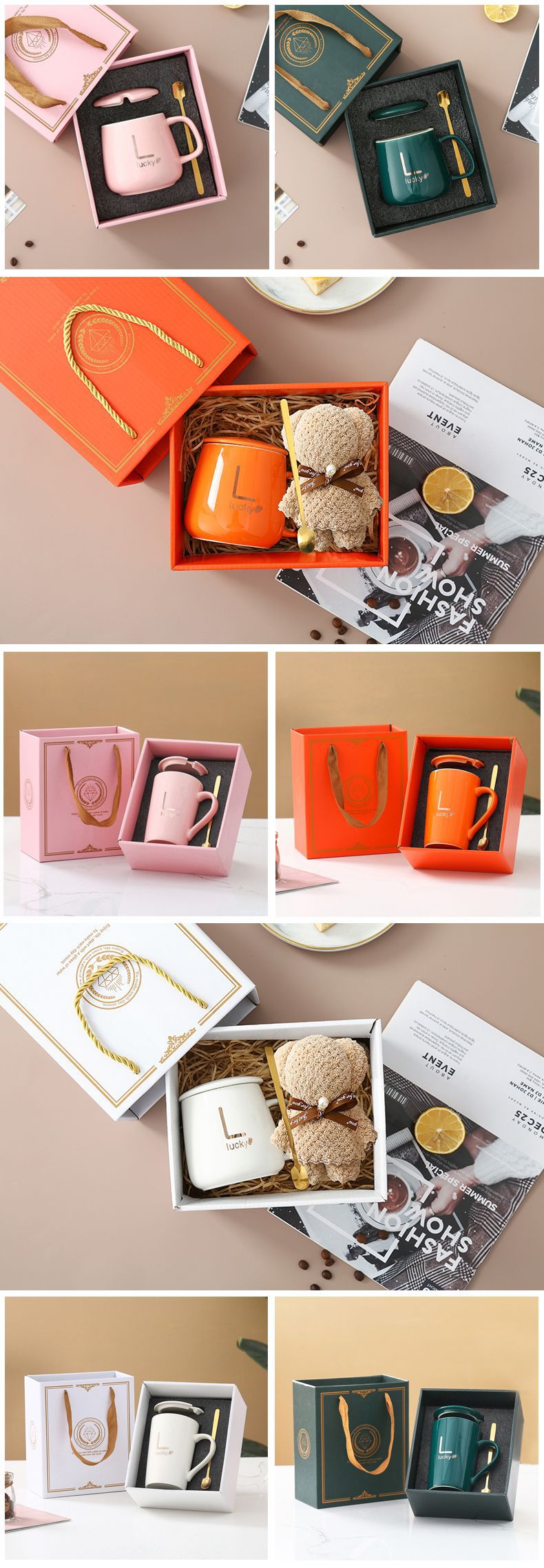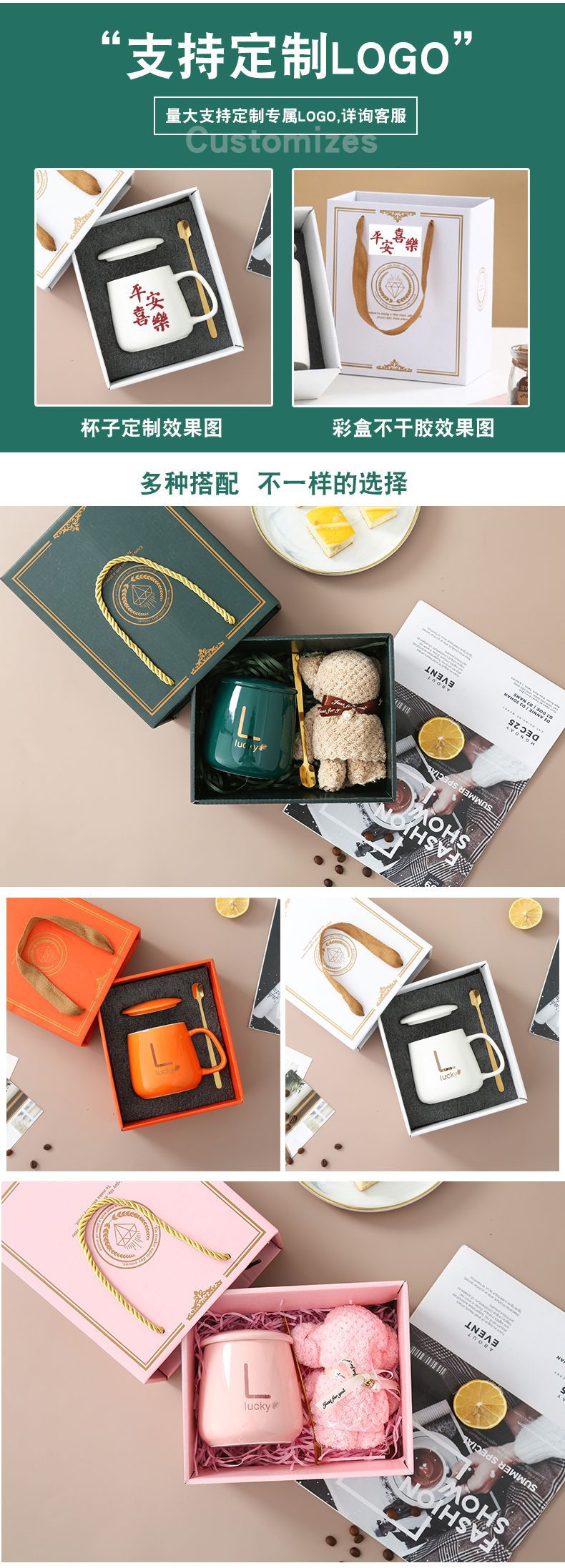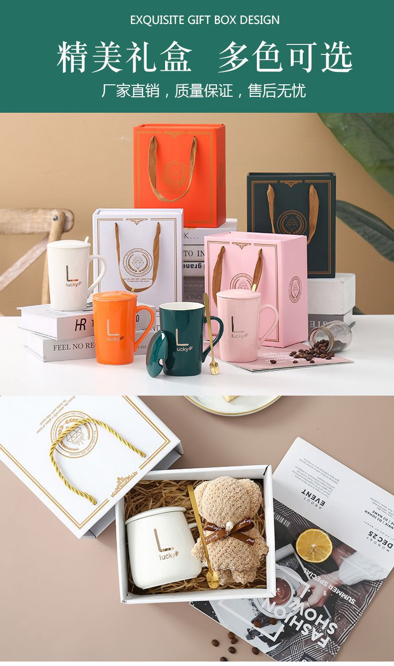 简约时尚陶瓷马克杯手提礼盒毛巾熊伴手礼开业实用礼品水杯套装