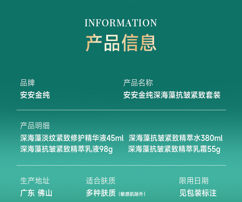 安安金纯深海藻抗皱紧致套装【龙菲精选】