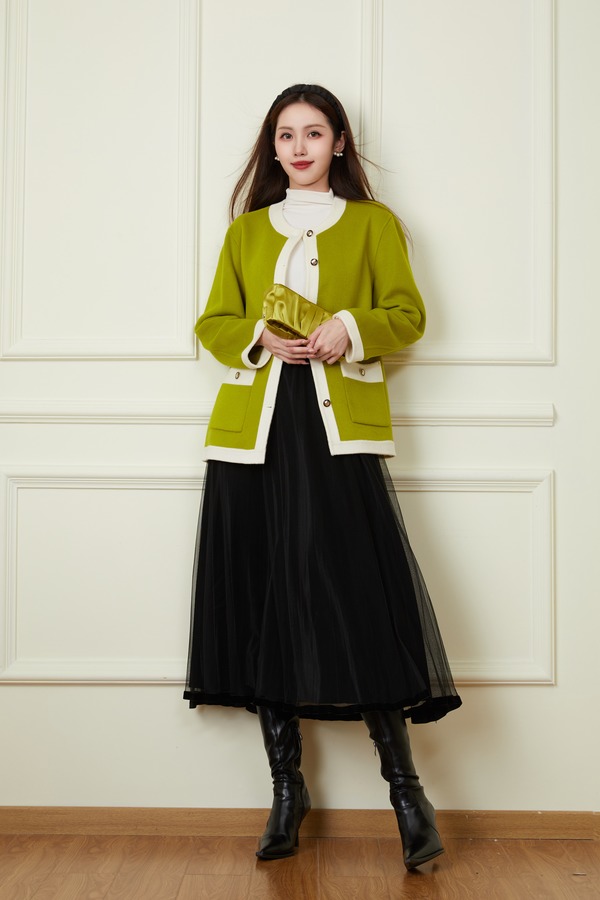 amadella 拼色V领针织开衫 13884