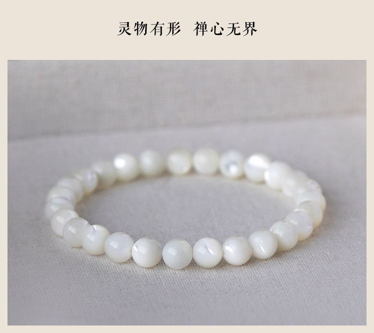 「19.9元包邮!天然白贝手串」超润白贝手串弹力绳手工打磨不掉色正品手链小清新女时尚饰品