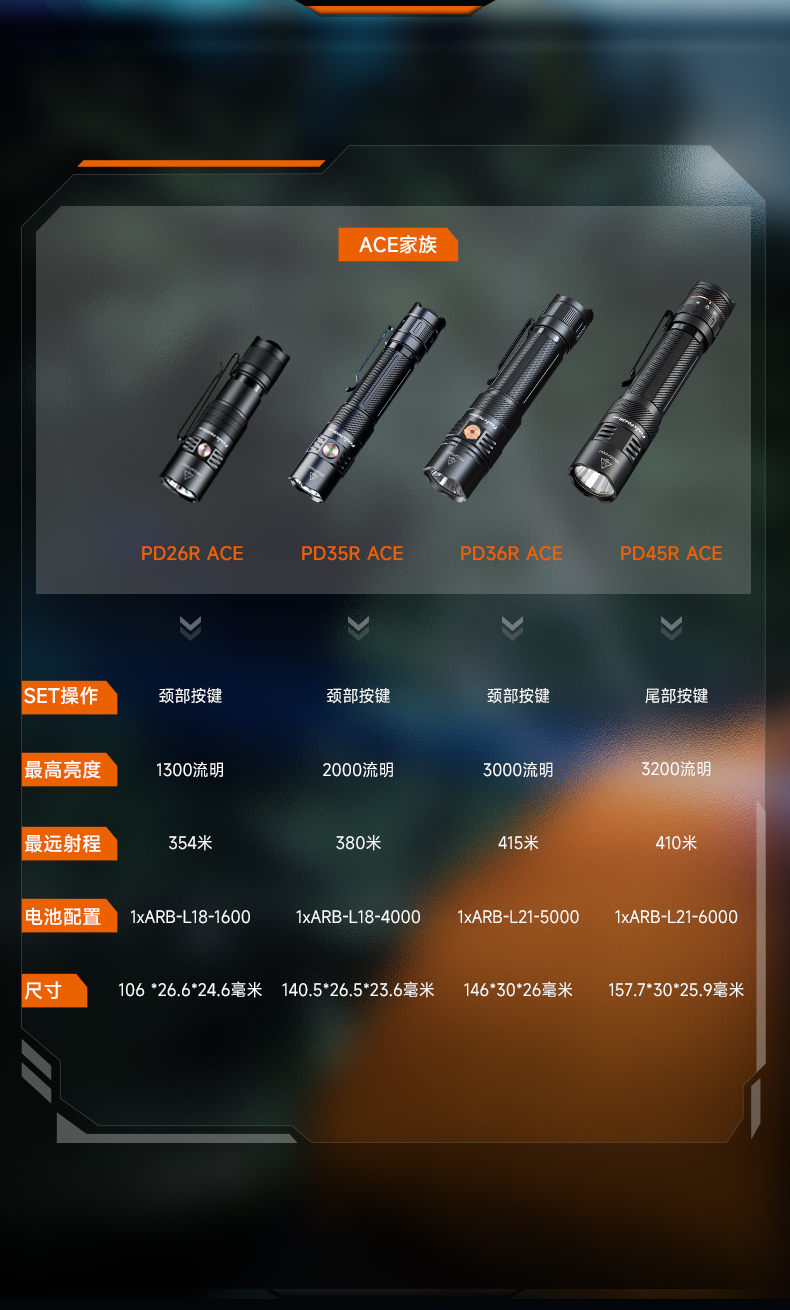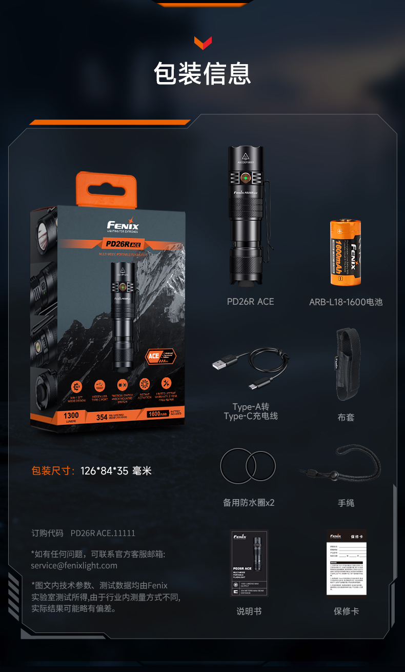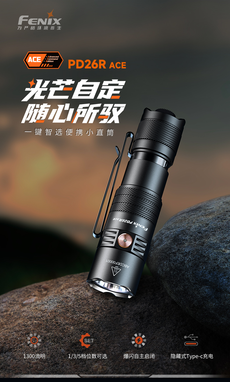 Fenix菲尼克斯PD26R ACE户外超亮充电防水强光聚光战术巡逻手电筒