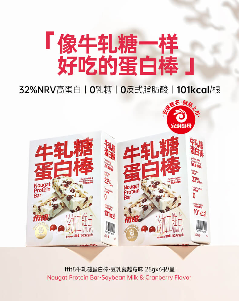 秒杀【安琪酵母联名】FFIT8牛轧糖蛋白棒 纽特仓库发货【26年5月到期】
