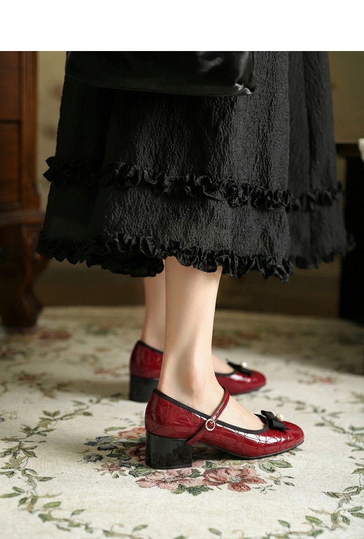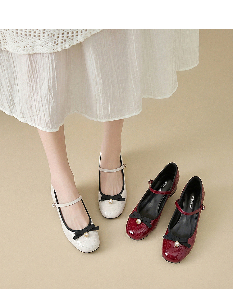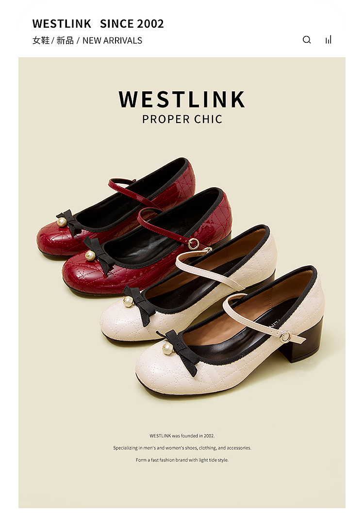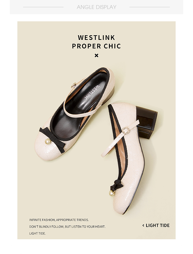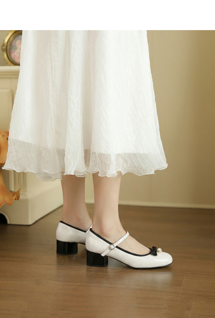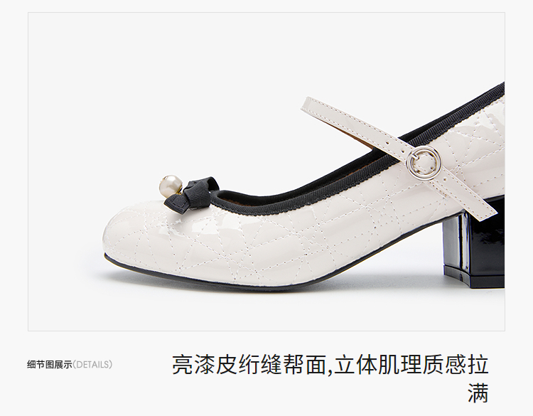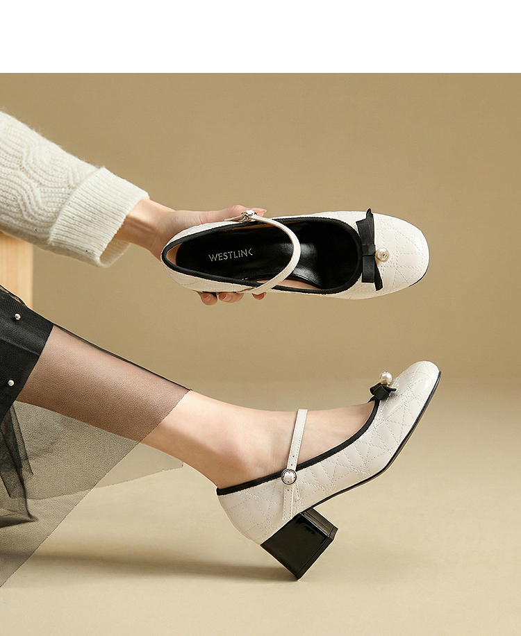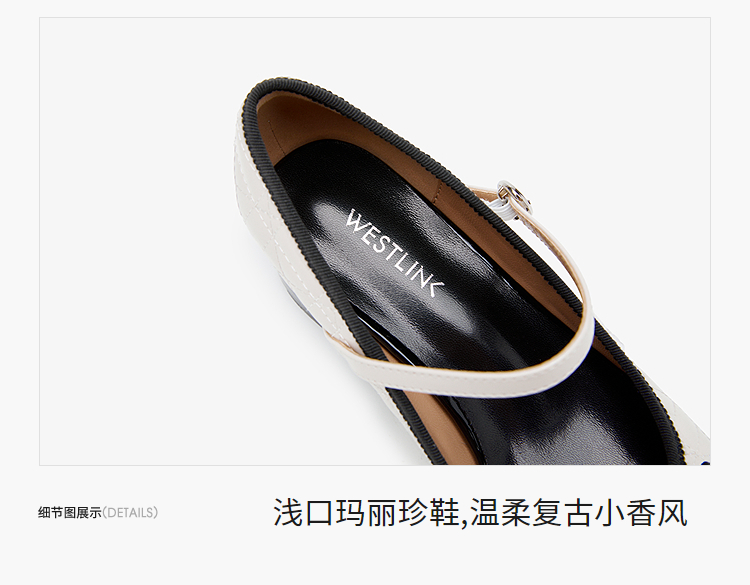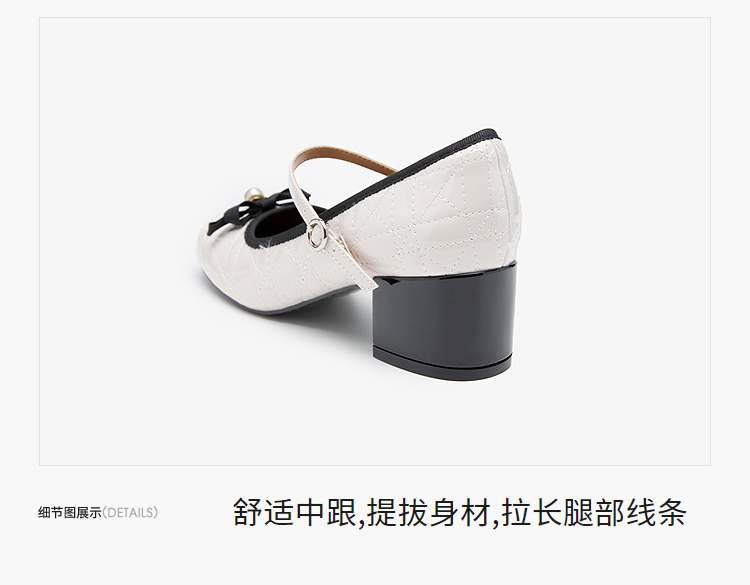 西遇浅口粗跟玛丽珍女鞋2026新款春季一字扣带蝴蝶结小香风单鞋子V0166273V0166273