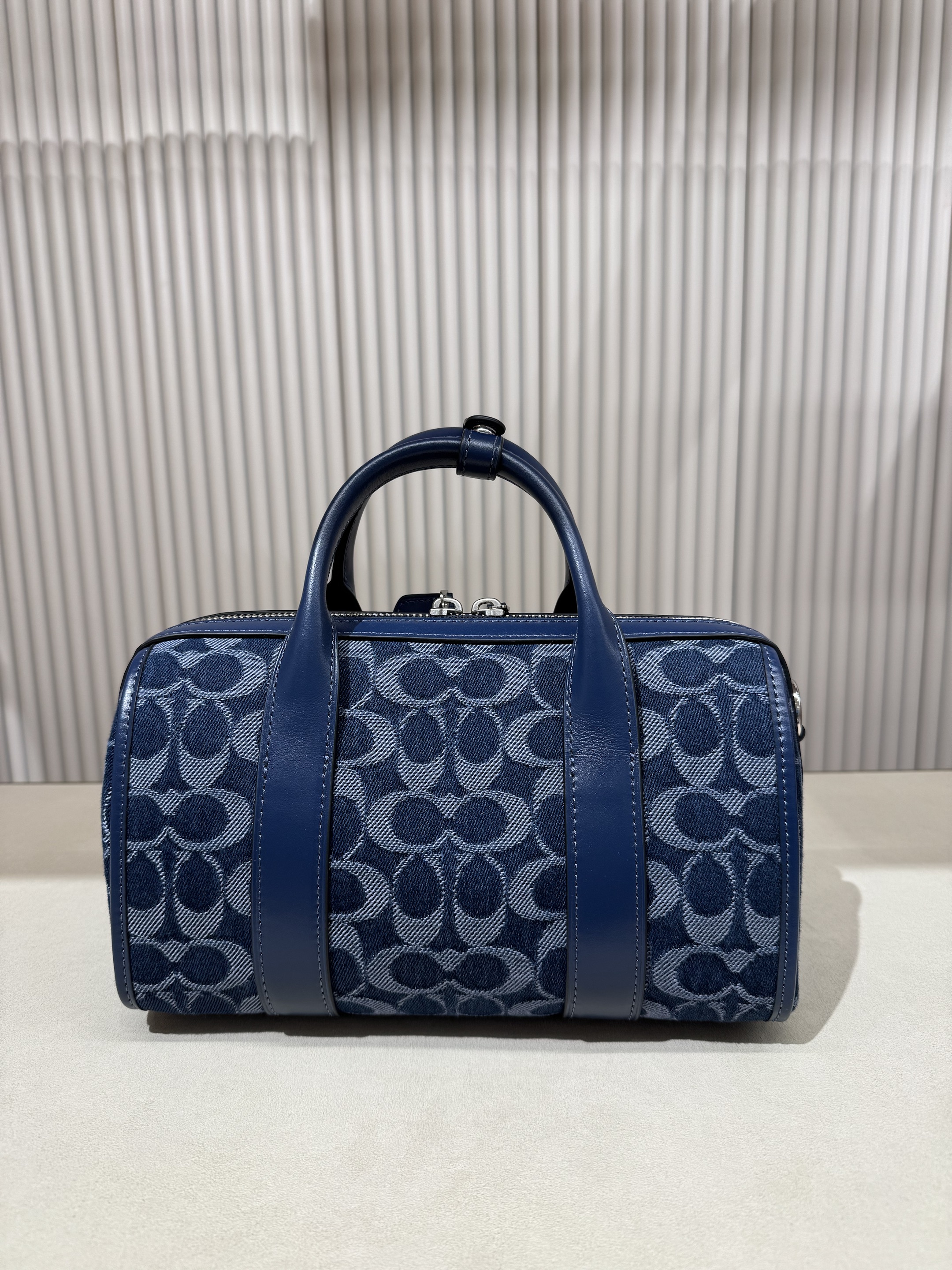 经典标志丹宁布 品牌标牌挂饰Logo满印牛仔布拼小牛皮 单肩斜挎手提包